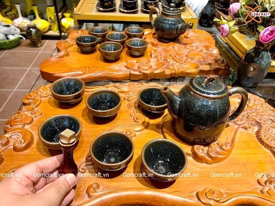 - Tính phong thủy cao: Bộ ấm chén gốm sứ thiên mục không chỉ là vật dụng thiết yếu trong mọi gia đình mà còn mang nét văn hóa dân tộc, cá tính gia chủ, phong thủy sâu sắc. Việc chọn được bộ ấm chén đẹp mắt vừa giúp không gian bàn tiếp khách thêm ấm cúng, hòa thuận, thể hiện sự tấm lòng hiếu khách phương xa mà còn làm tăng vẻ sang trọng cho ngôi nhà của gia chủ.