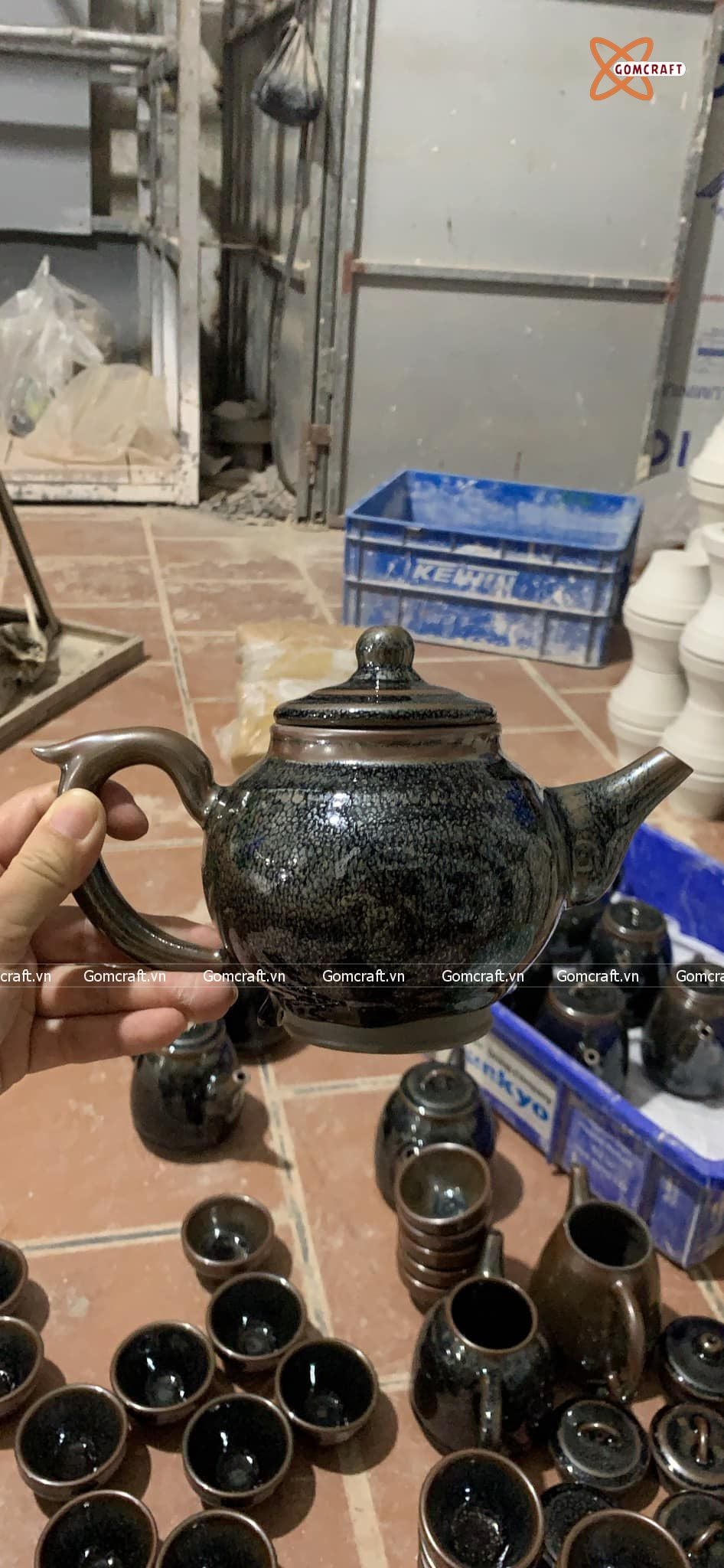 Ấm Chén Bát Tràng Men Thiên Mục 300ml | Quà Tặng Doanh Nghiệp bộ ấm chén uống trà