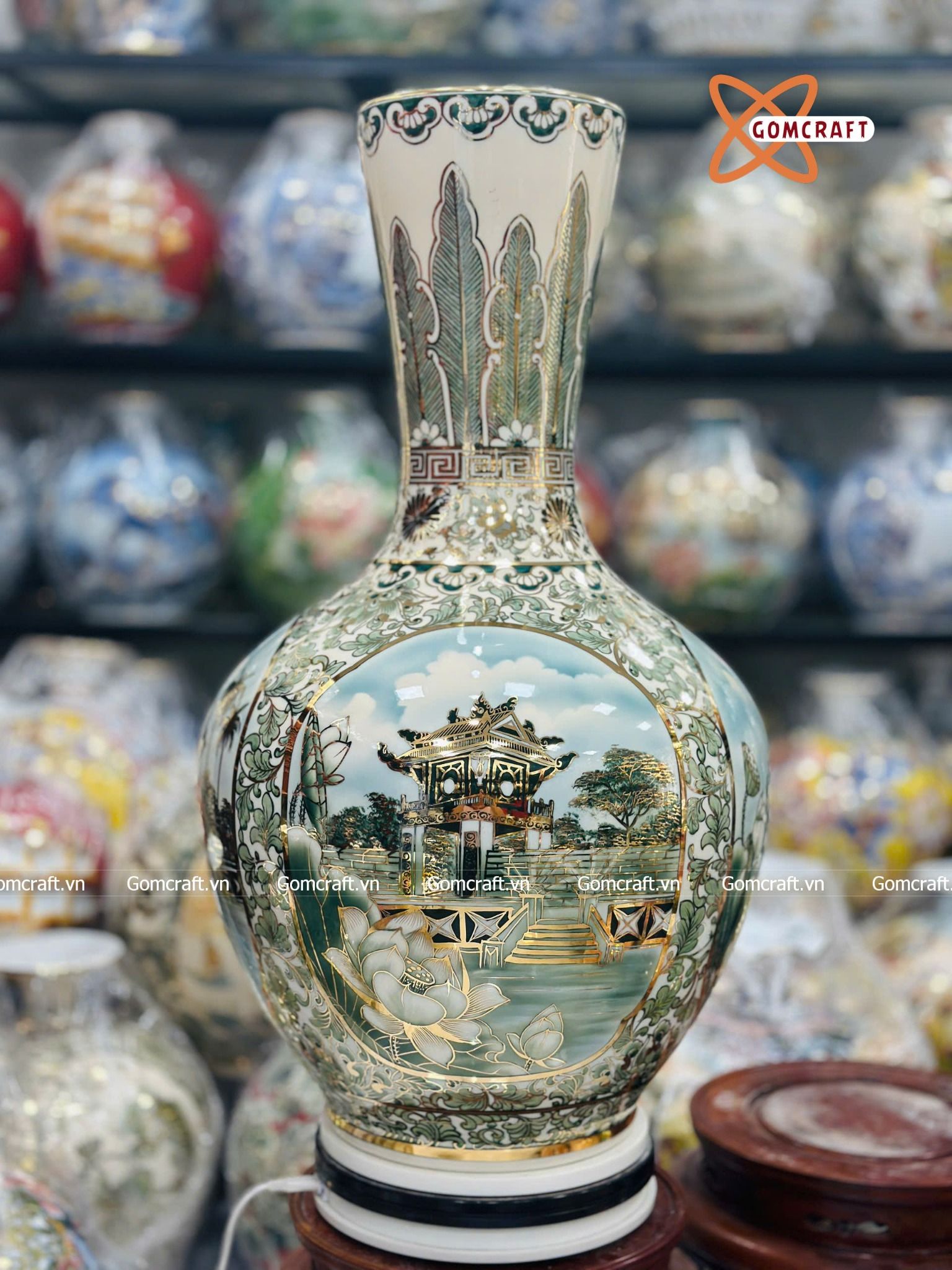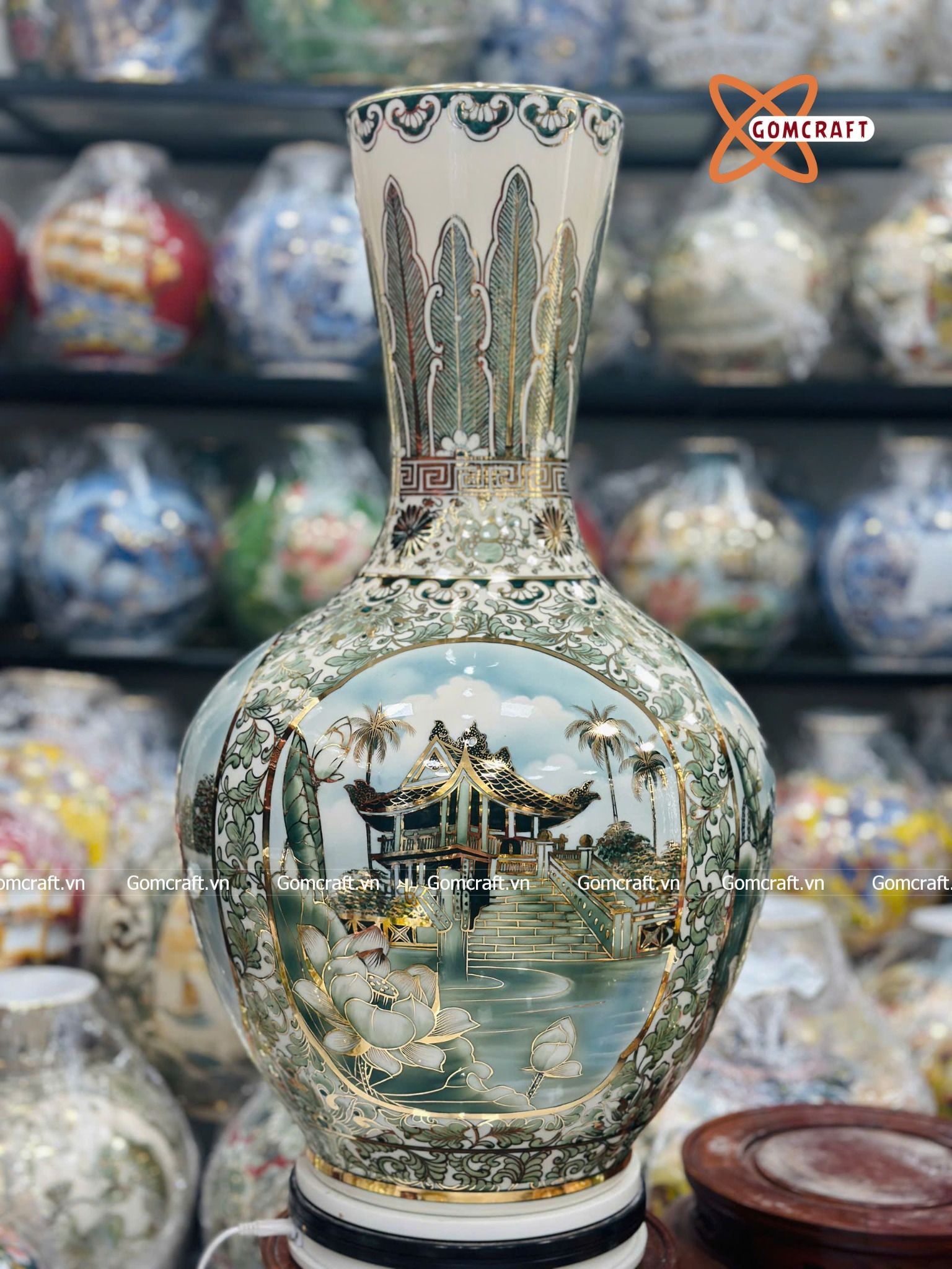 Bình Củ Tỏi cao cấp tứ cảnh Hà Nội men màu vẽ vàng 24k cao 75 cm