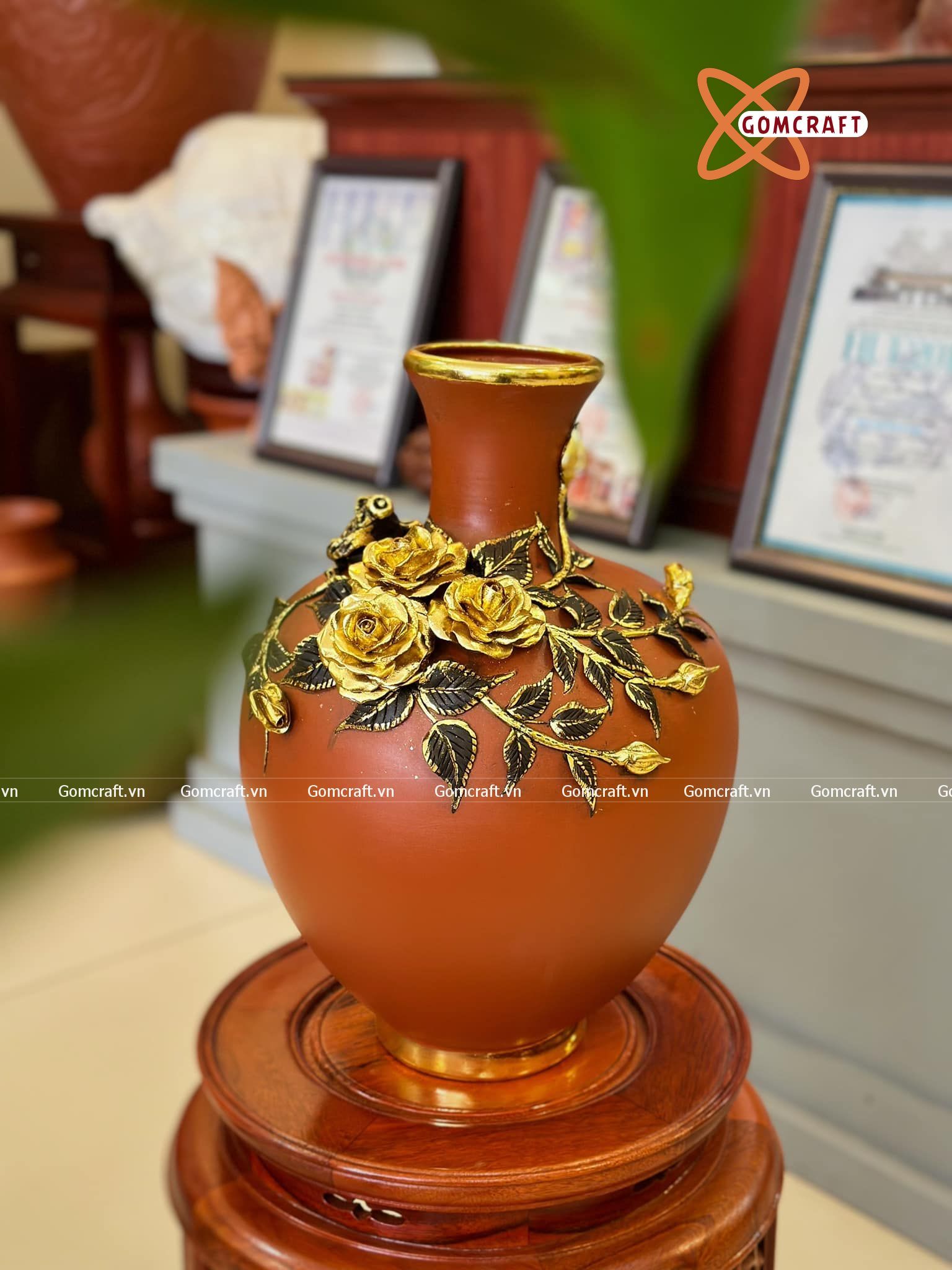 Bình Hoa Bát Tràng đắp nổi kênh bong vẽ vàng 24k cao 36 cm