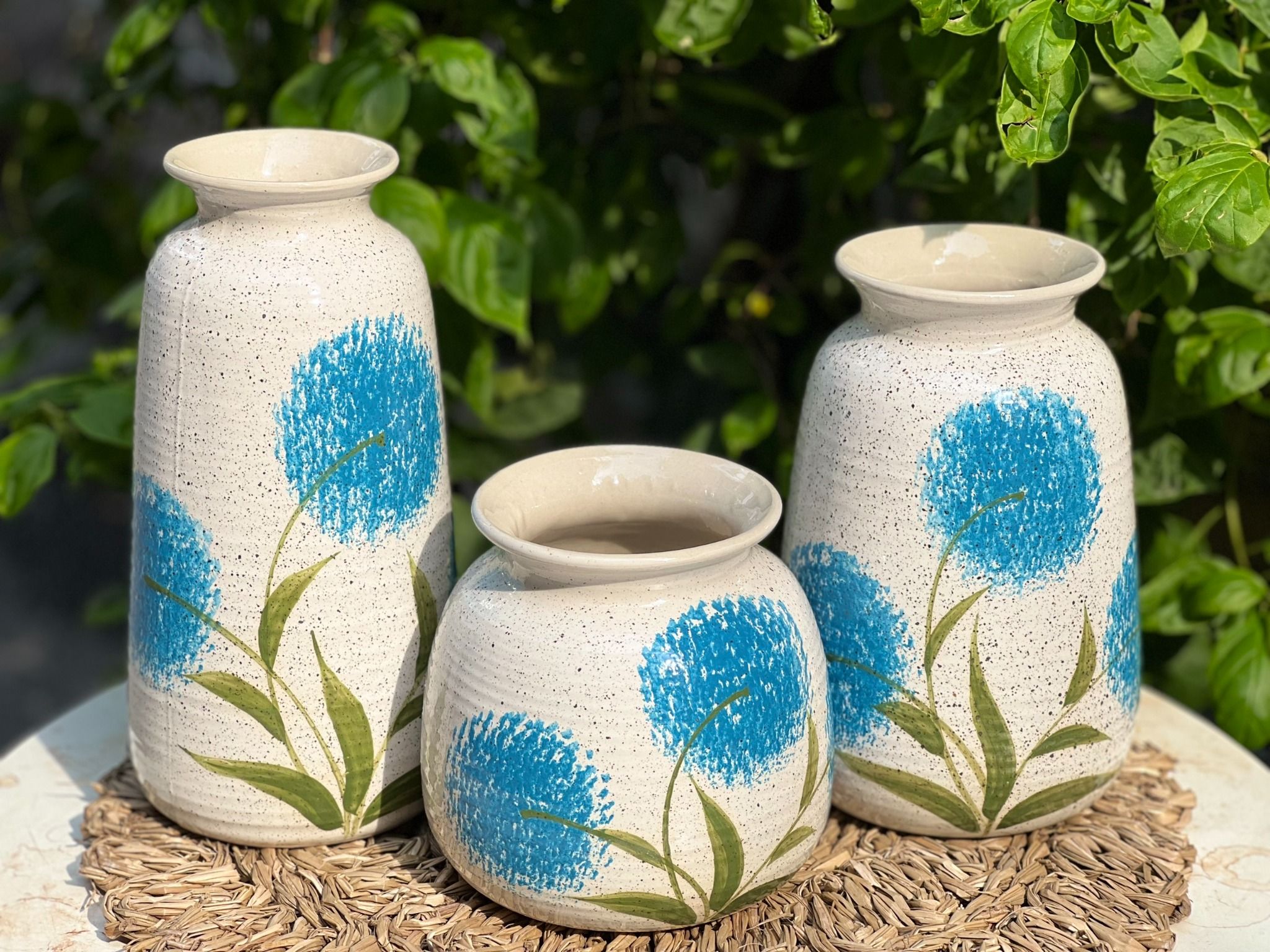 Bộ 3 Bình Hoa Vẽ Tay gốm sứ Bát Tràng họa tiết Hoa Bồ Công Anh | Quà Tặng bình hoa Bát Tràng