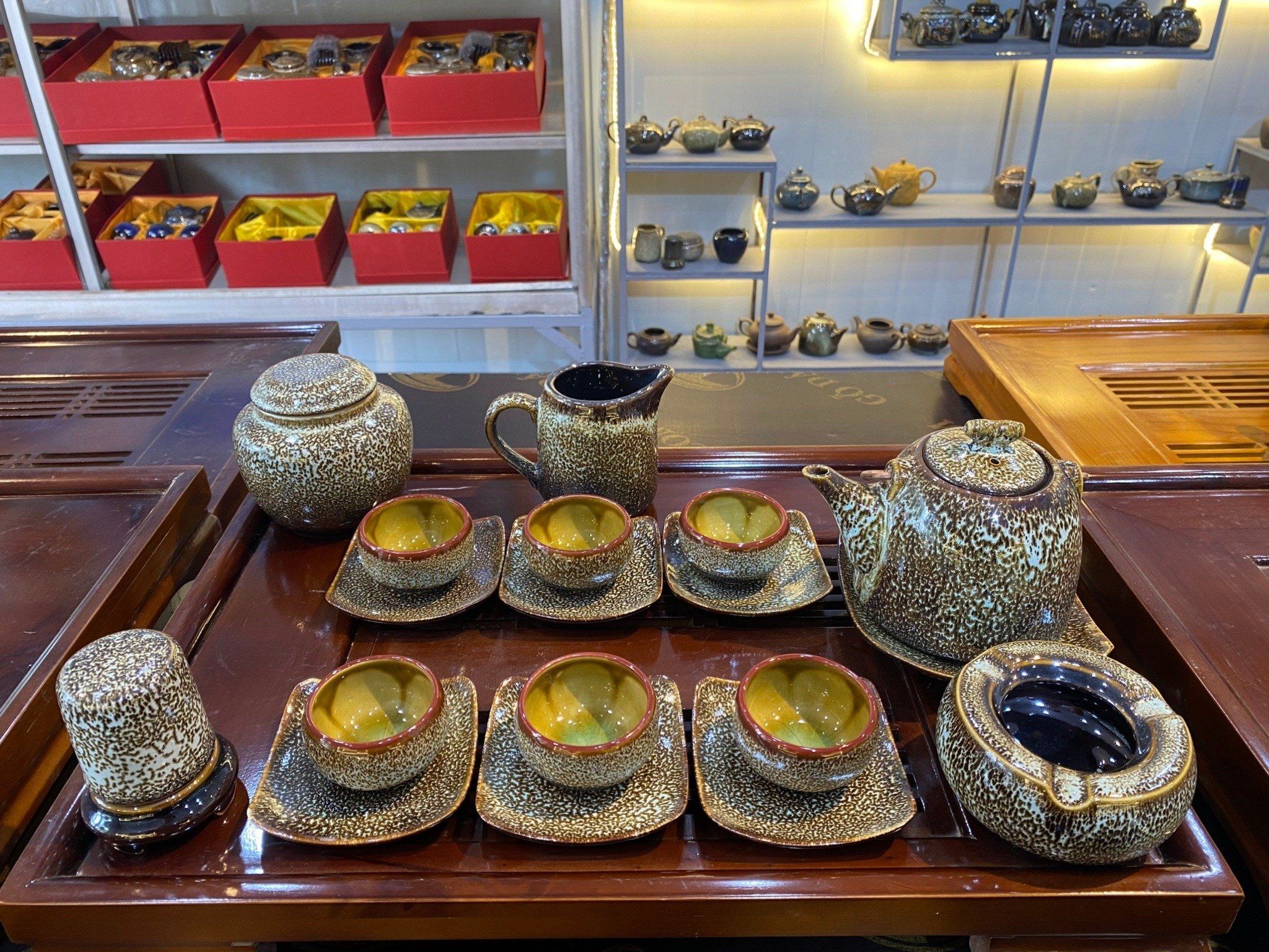 Ấm Chén Bát Tràng men Hỏa Biến da báo dáng Tích Nhỏ lòng hoa 330ml | Quà Tặng Doanh Nghiệp bộ ấm chén uống trà