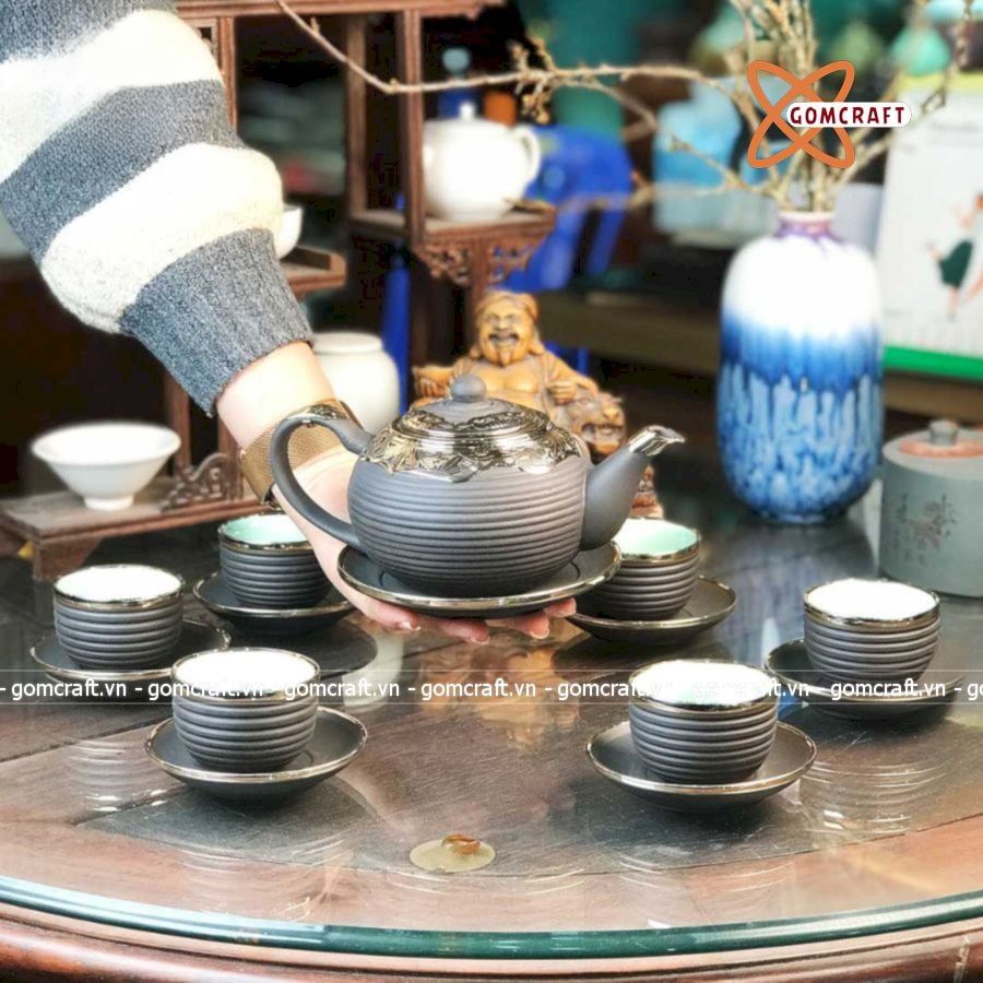 Ấm Chén Bát Tràng Tử Sa bọc Đồng dáng Tống vân Ganh 420ml | Quà Tặng Doanh Nghiệp bộ ấm chén uống trà