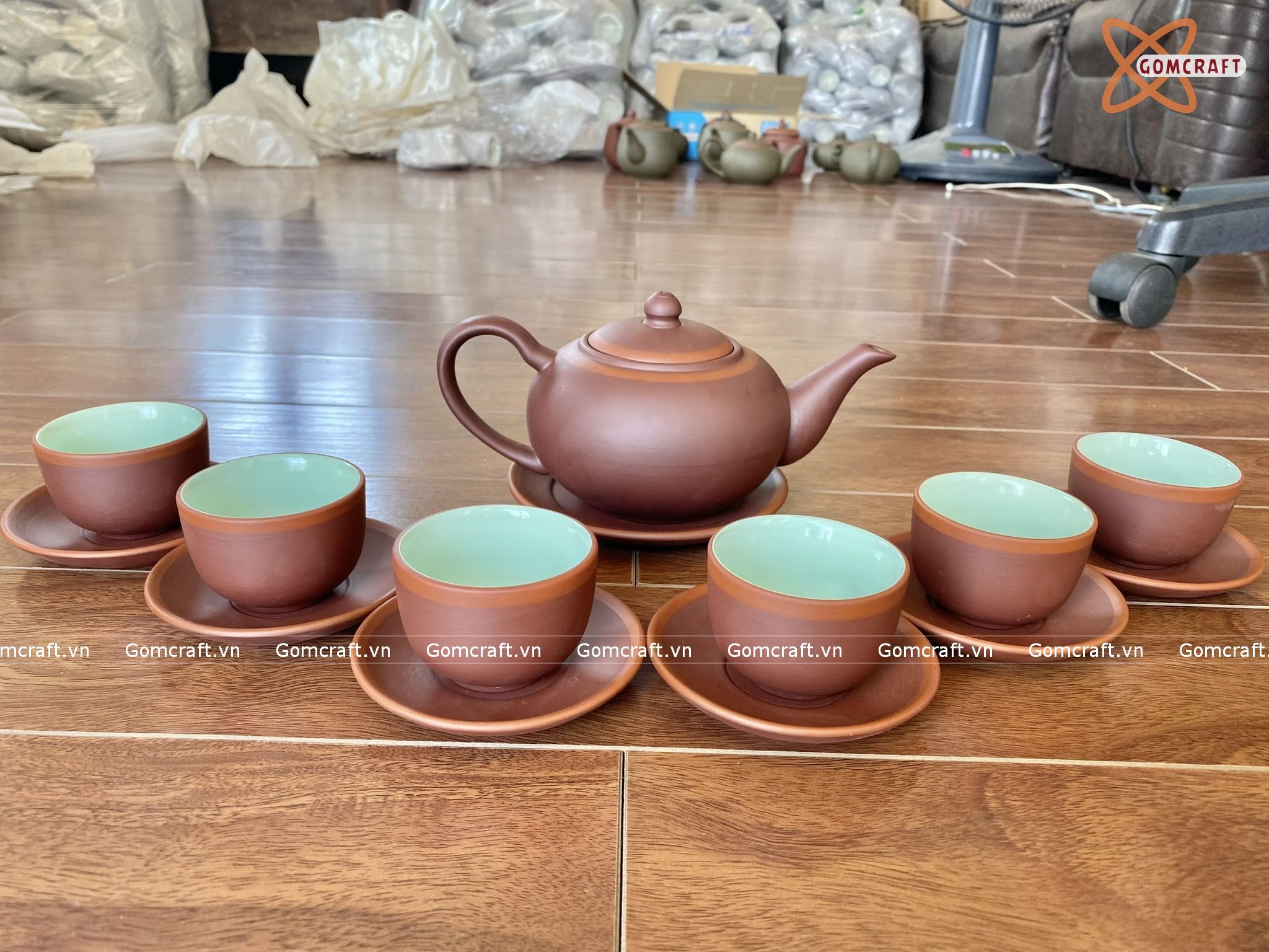 Có thể đặt trên bàn làm việc, đặt ở vị trí này mọi người nên lựa chọn ấm chén gốm cho phòng làm việc tạo cảm hứng sáng tạo, từ đó giúp công việc kinh doanh suôn sẻ, vượt qua mọi khó khăn và thử thách trong con đường sự nghiệp.