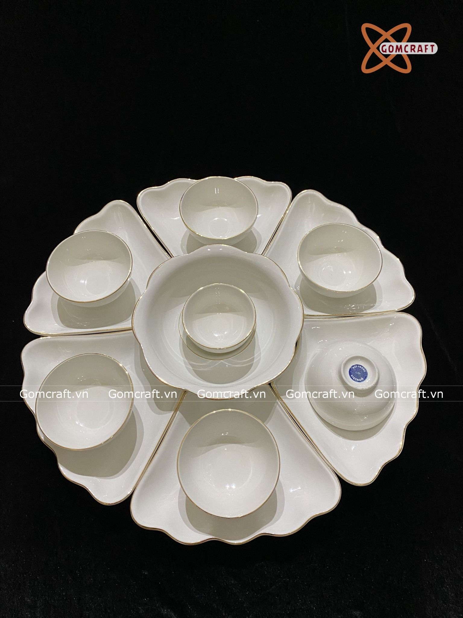 Bát Sứ Bát Tràng Hoa Mặt Trời Vẽ Vàng Kim hàng kỹ size 45 bộ 15 chi tiết | Quà Tặng Doanh Nghiệp bát sứ
