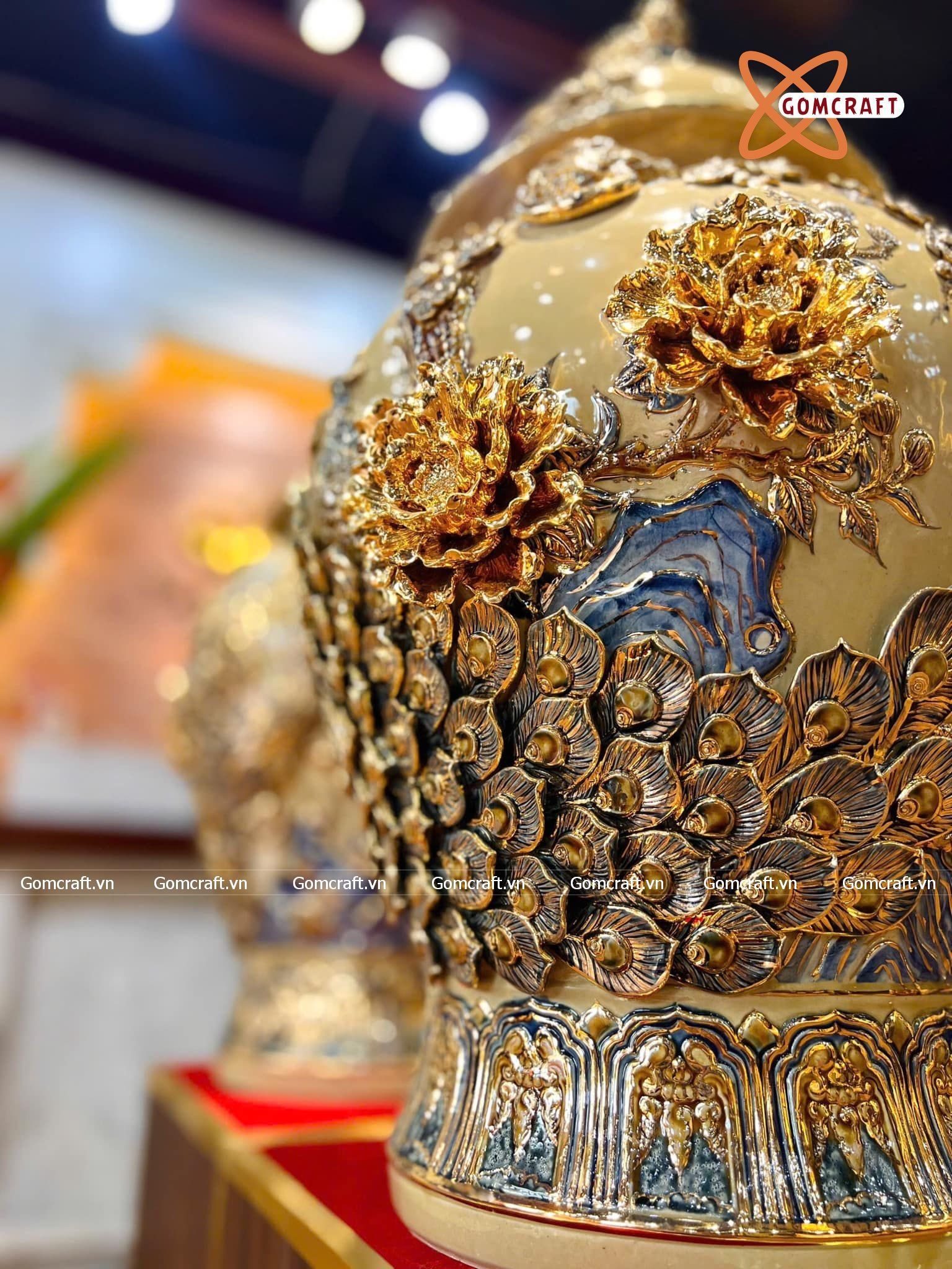 Choé Bát Tràng cao cấp Phú Quý Trường Xuân men hoàng tộc đắp nổi kênh bong siêu kĩ vẽ vàng 24k