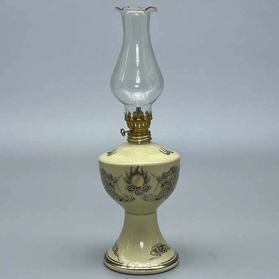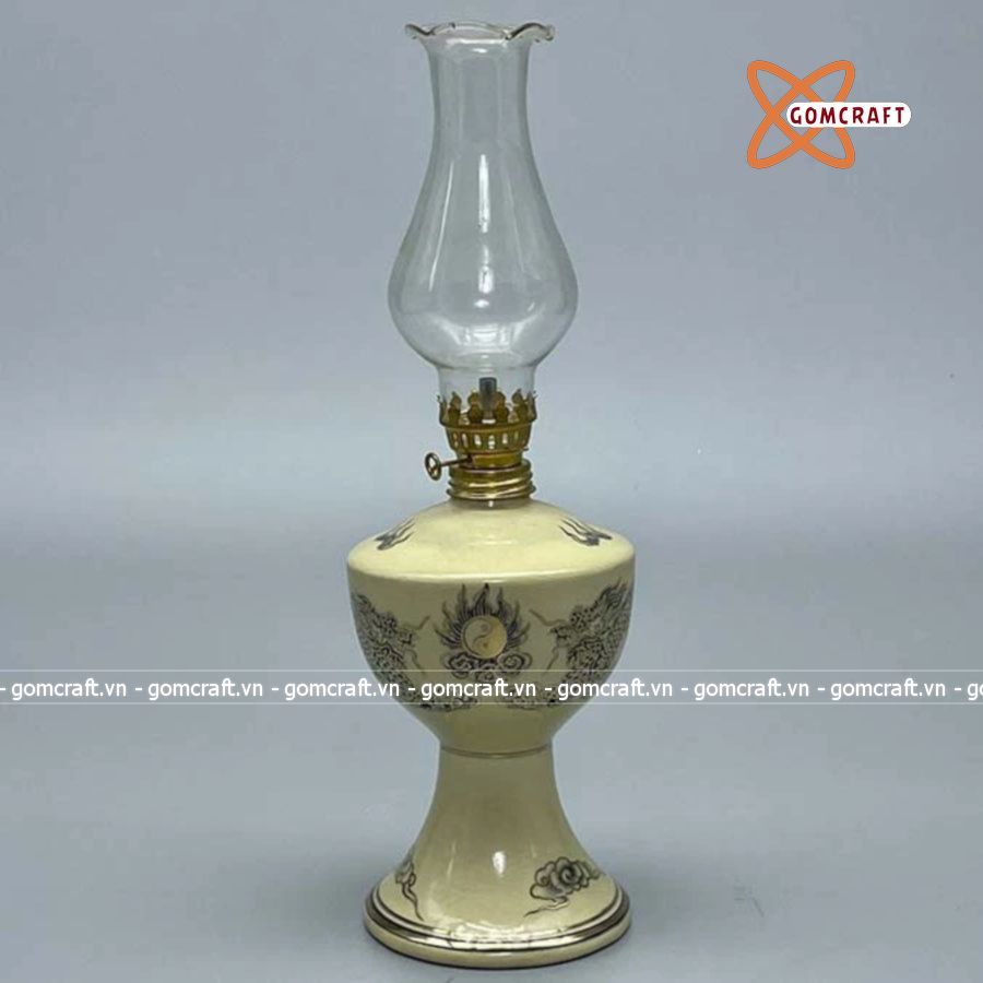 Đèn dầu gốm Chu Đậu vẽ vàng kim 20cm