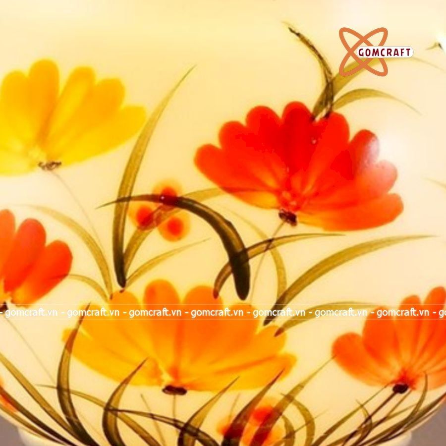 - Họa tiết tinh tế độc đáo: Đèn được trang trí với nhiều họa tiết hoa văn mang ý nghĩa tốt lành, như hoa mai, hoa đào, hoa sen, hoa mẫu đơn, chim công, rồng phụng, bát mã, bát bảo, v.v.. Một số loại đèn còn được dát vàng 24K hoặc vẽ vàng 24K để tăng thêm vẻ sang trọng và quý phái.