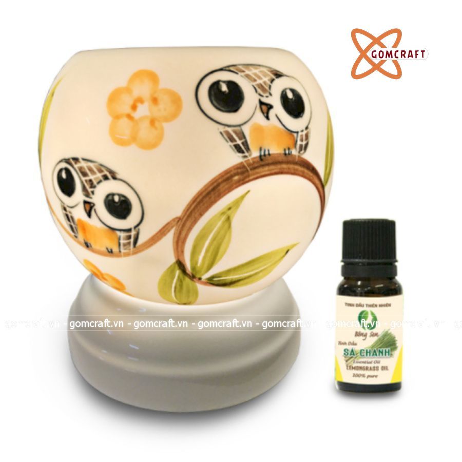 Đèn xông tinh dầu gốm Bát Tràng - Đôi Chim Cú