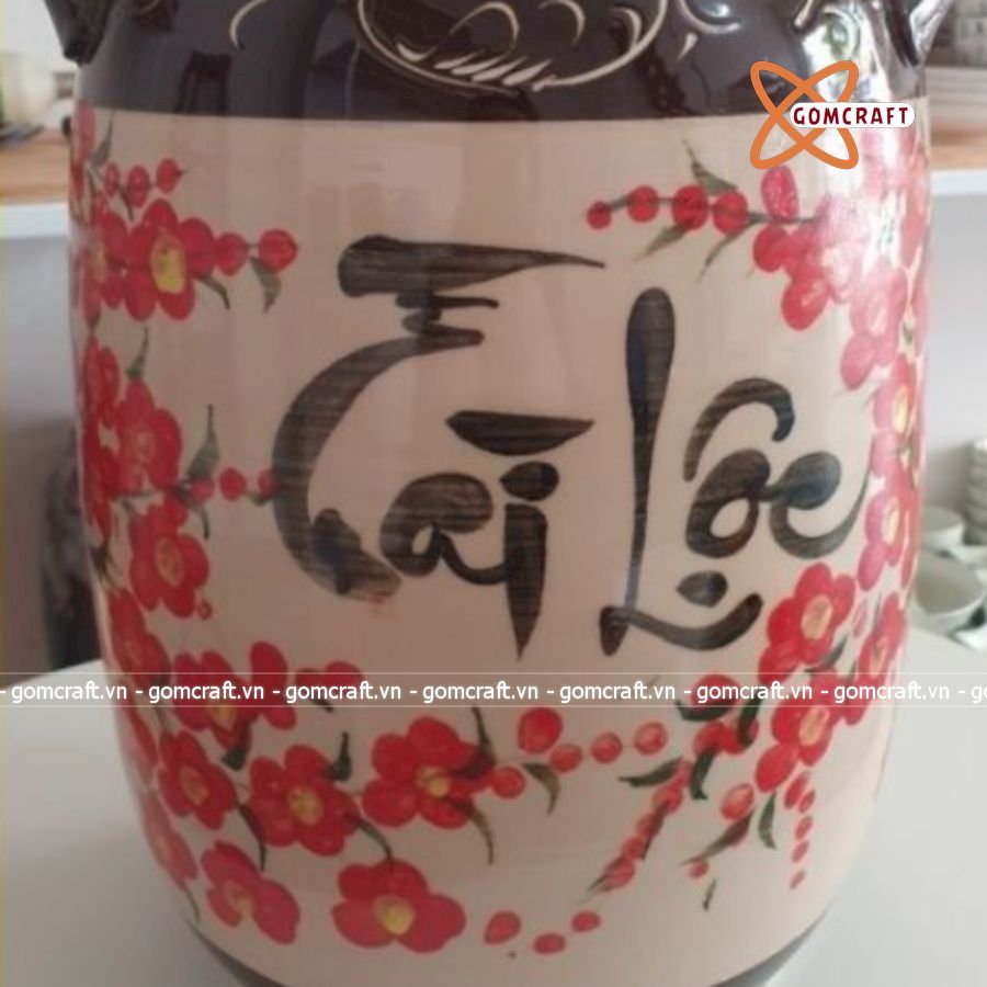 Quà tặng cao cấp Hũ đựng gạo Bát Tràng tráng men họa tiết chữ Tài Lộc dung tích 20 lít