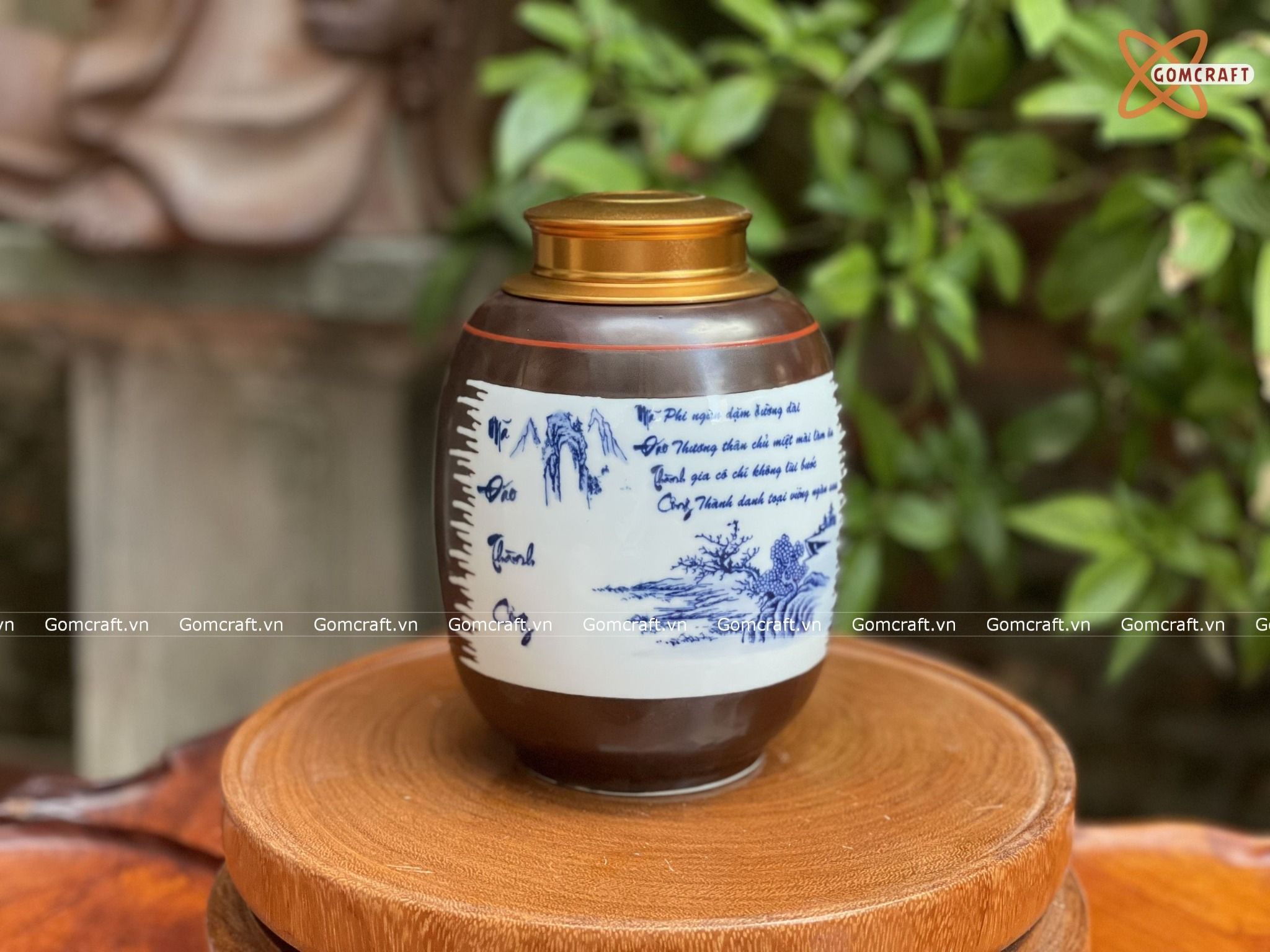 Hũ Đựng Trà Gốm Sứ Bát Tràng Cao Cấp Họa Tiết Mã Đáo Thành Công Cao 18cm | Quà Tặng Doanh Nghiệp hũ đựng trà bằng gốm