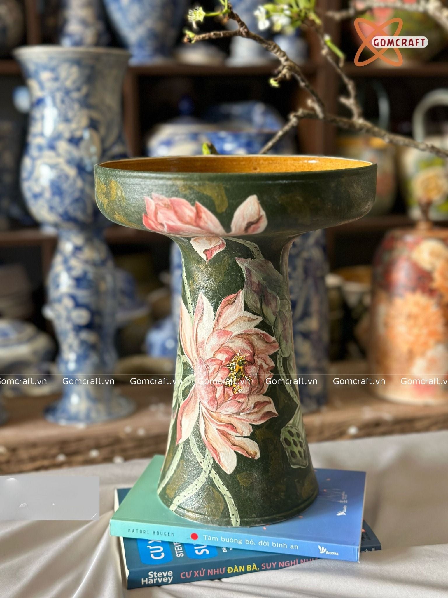 Gia chủ cũng có thể đặt lọ hoa trên bàn làm việc hay trên kệ sách, đặt ở vị trí này mọi người nên lựa chọn lọ hoa phù hợp cho phòng làm việc tạo cảm hứng sáng tạo, từ đó giúp công việc kinh doanh suôn sẻ, mọi sự hanh thông.