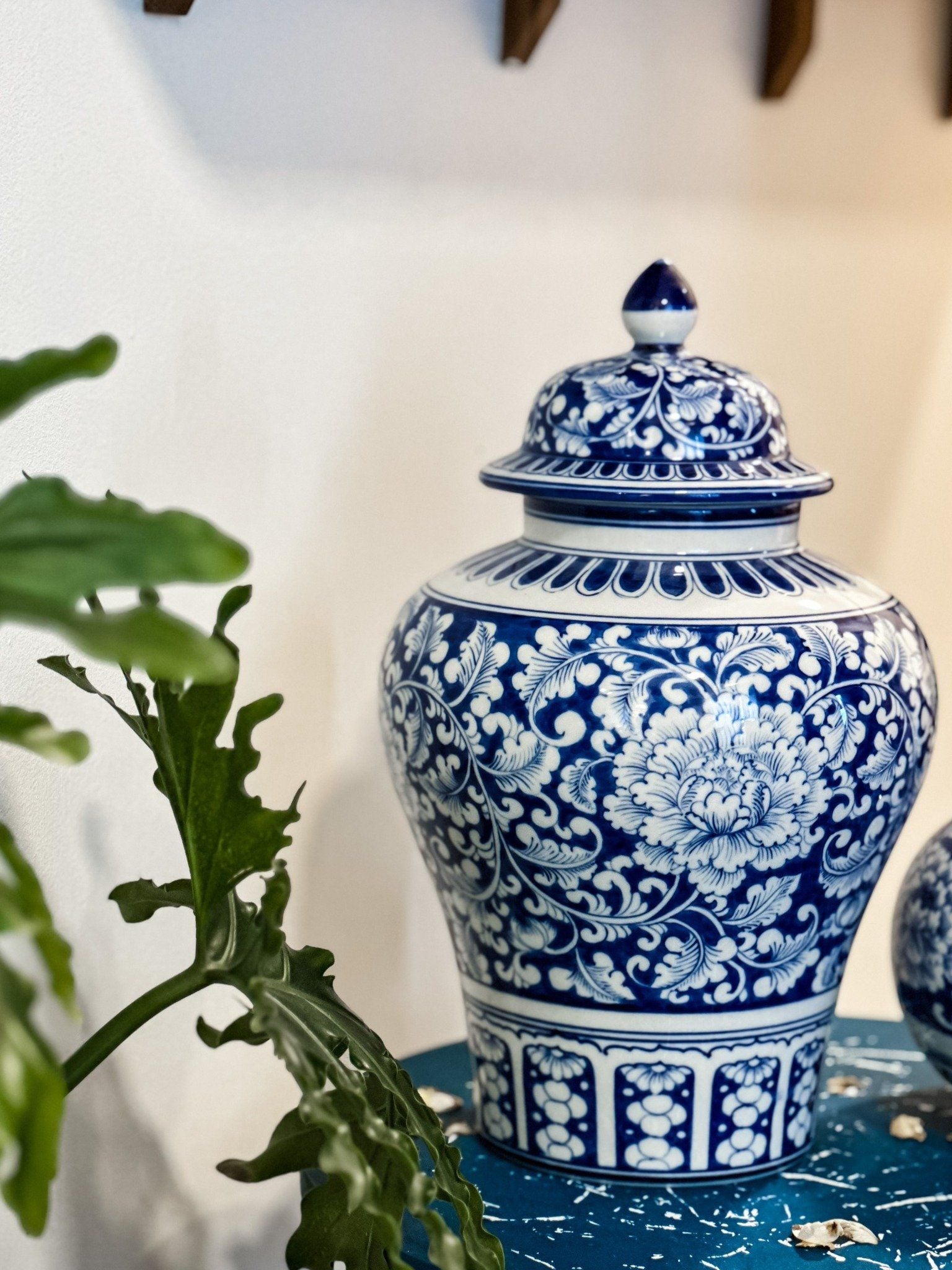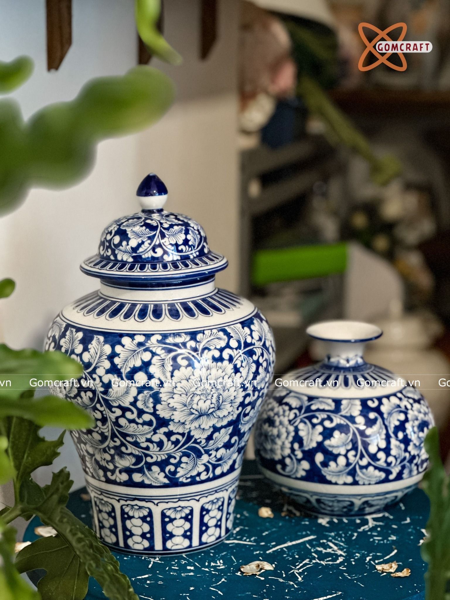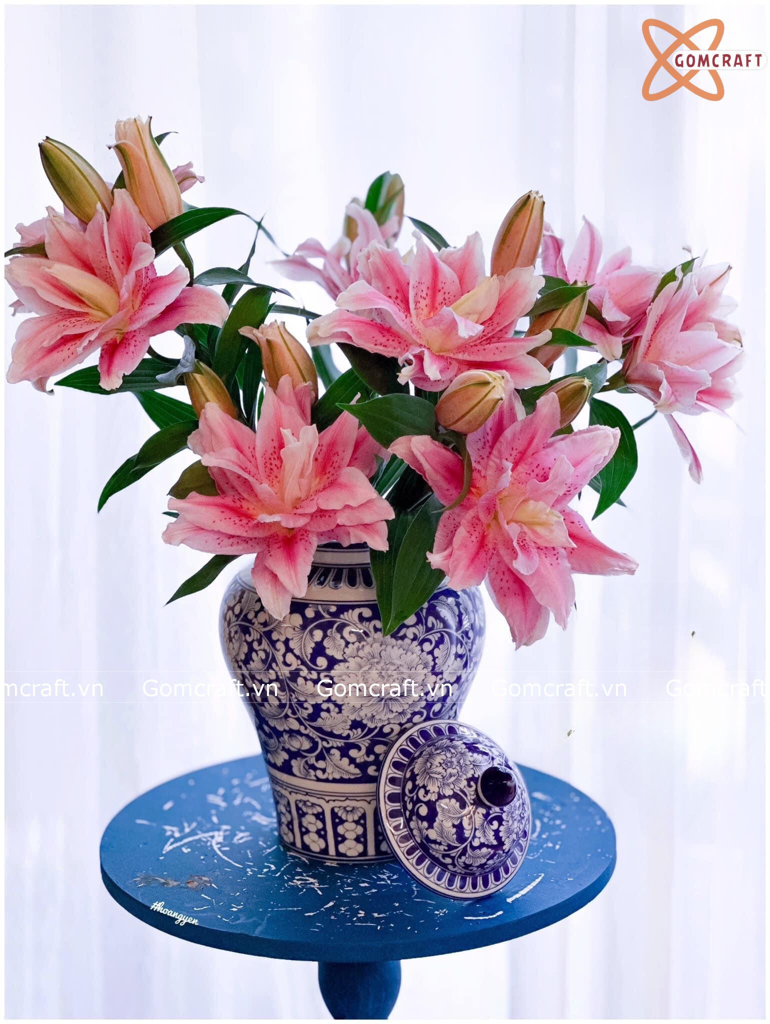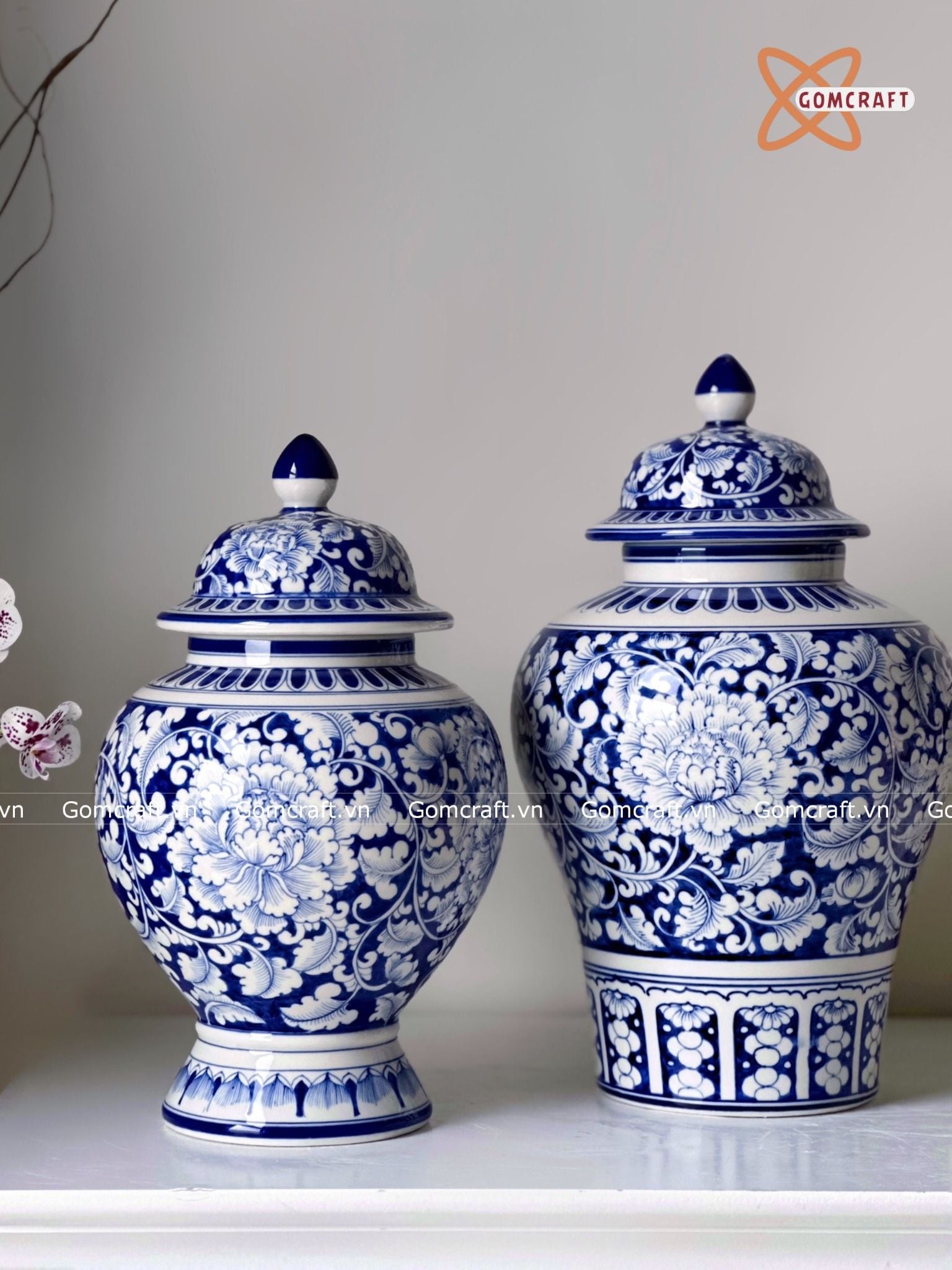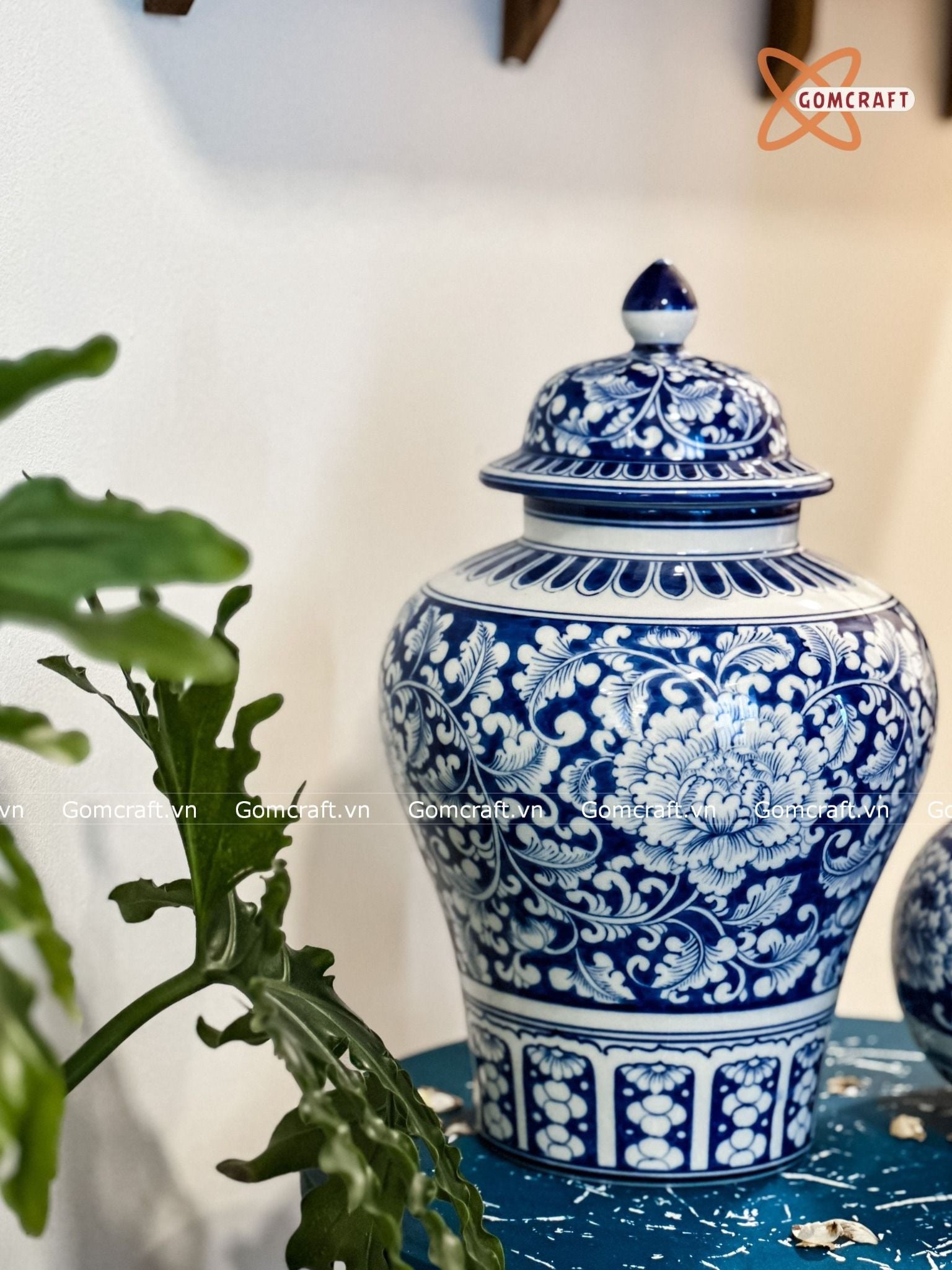 Chóe Tròn Men Lam Vẽ Kỹ Hoa Dây Kín Bình cao 42cm