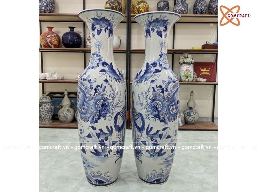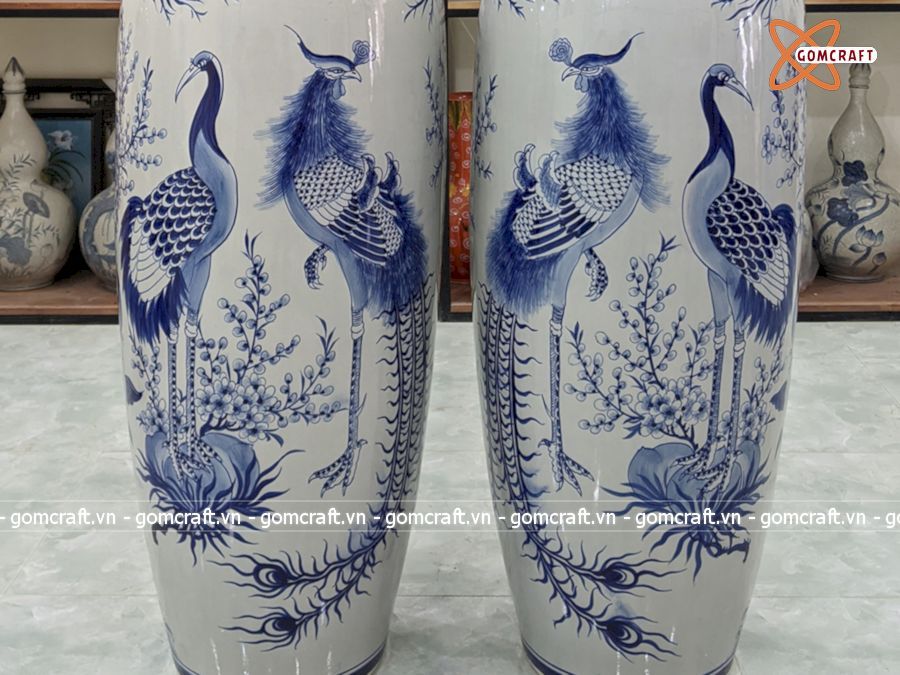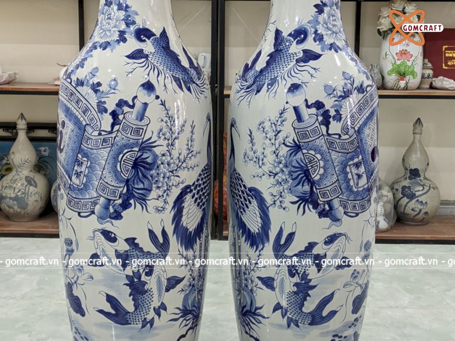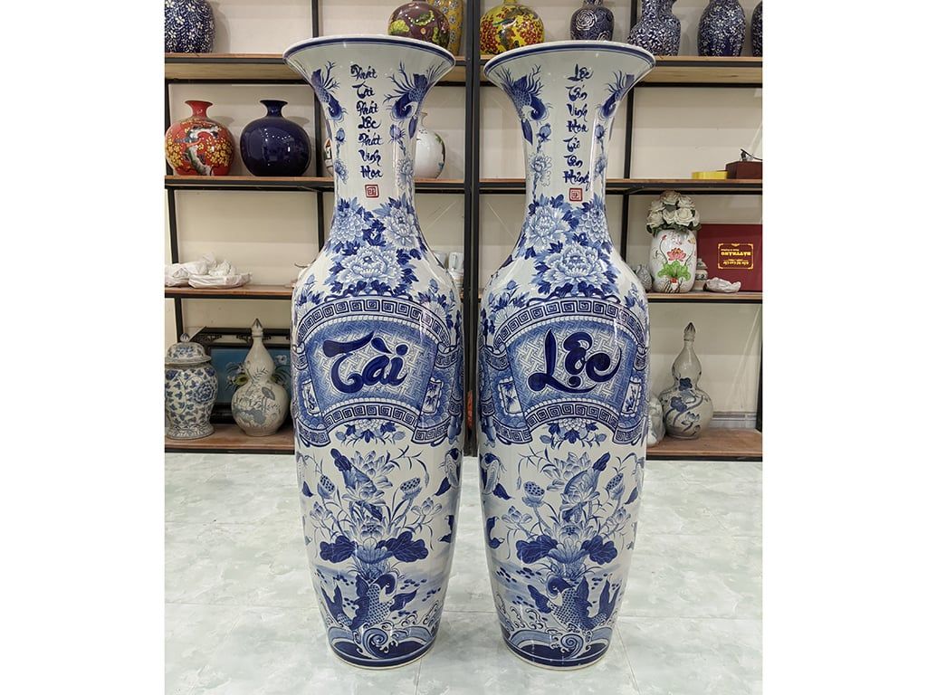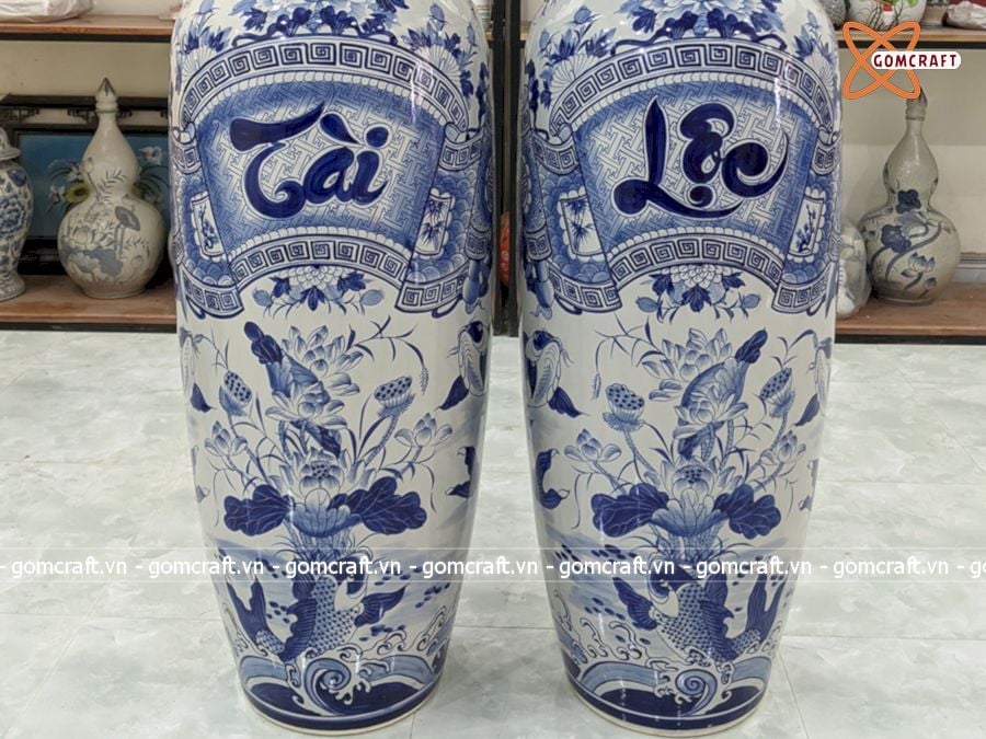 Lục Bình Bát Tràng men lam Tài Lộc 1m4 bụng 42cm | Quà Tặng Bố lục bình Bát Tràng