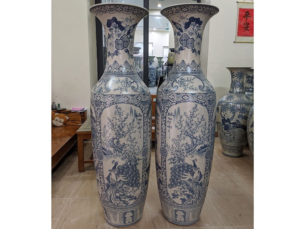 Lục Bình Bát Tràng men rạn vẽ kỹ Tứ Quý 1m6 | Quà Tặng Bố lục bình Bát Tràng
