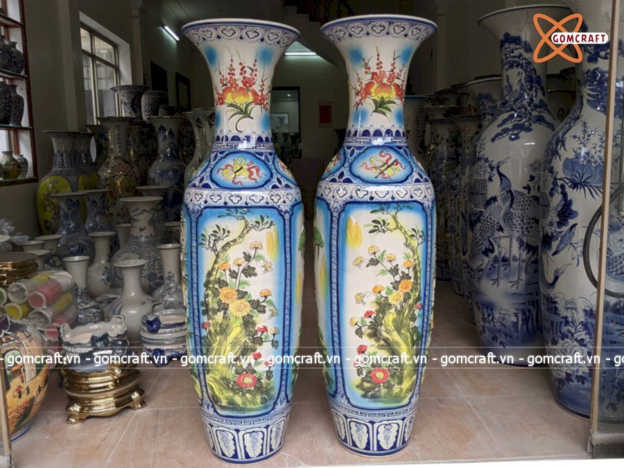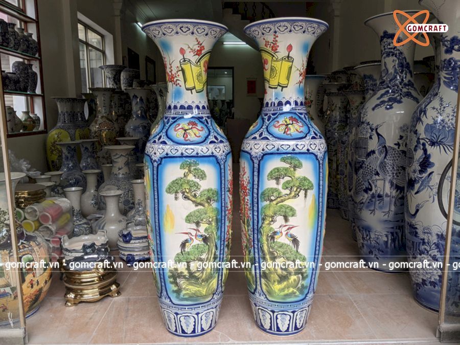 Lục Bình Bát Tràng men màu Tứ Quý nổi 1m4 | Quà Tặng Bố lục bình Bát Tràng
