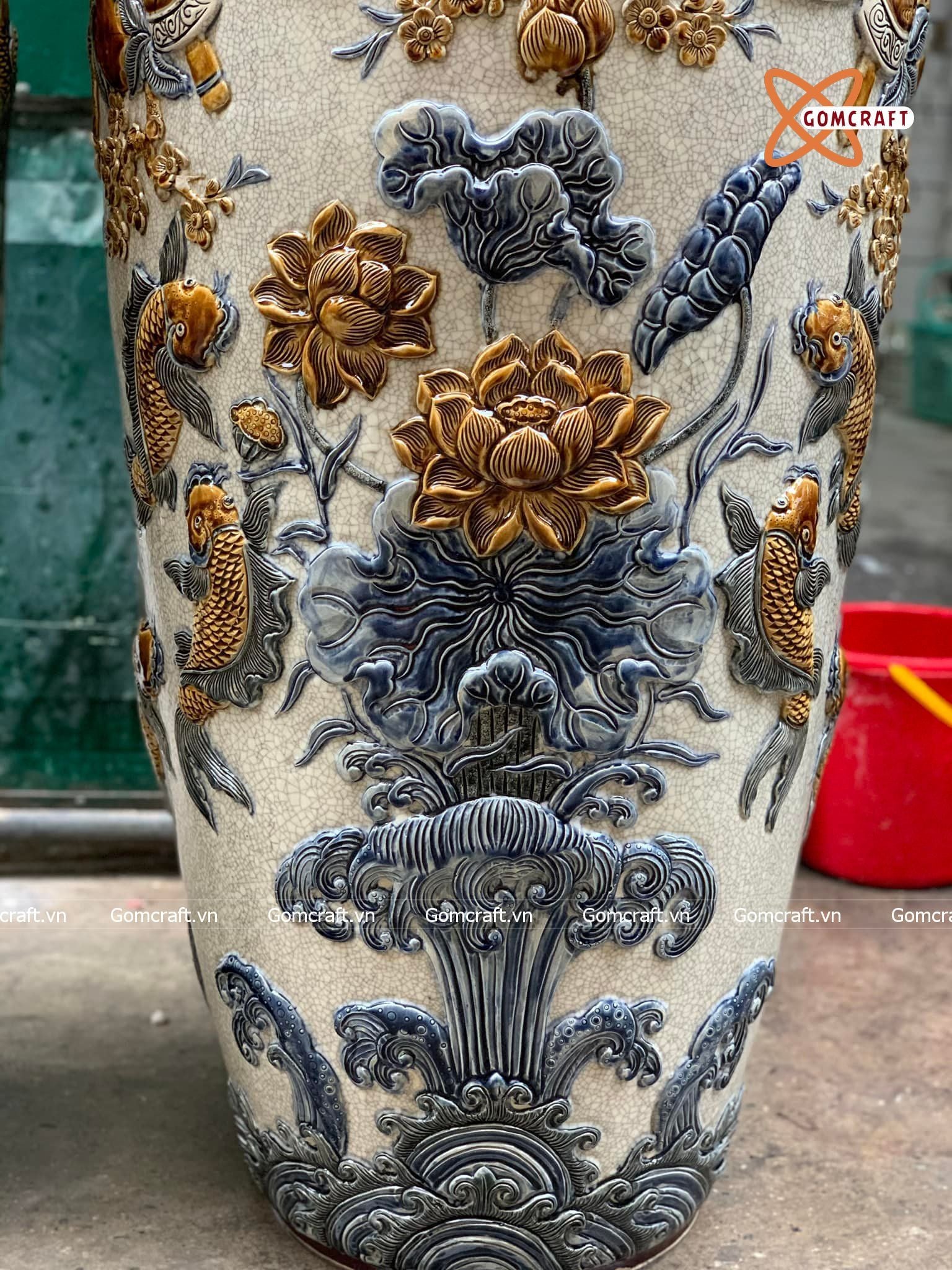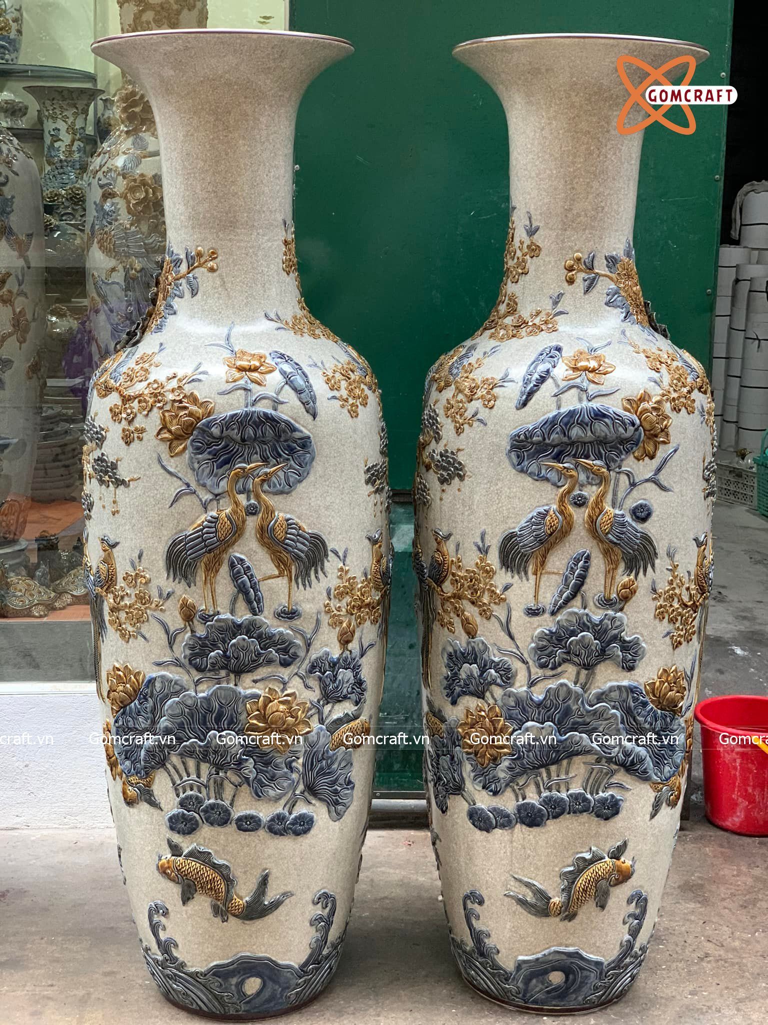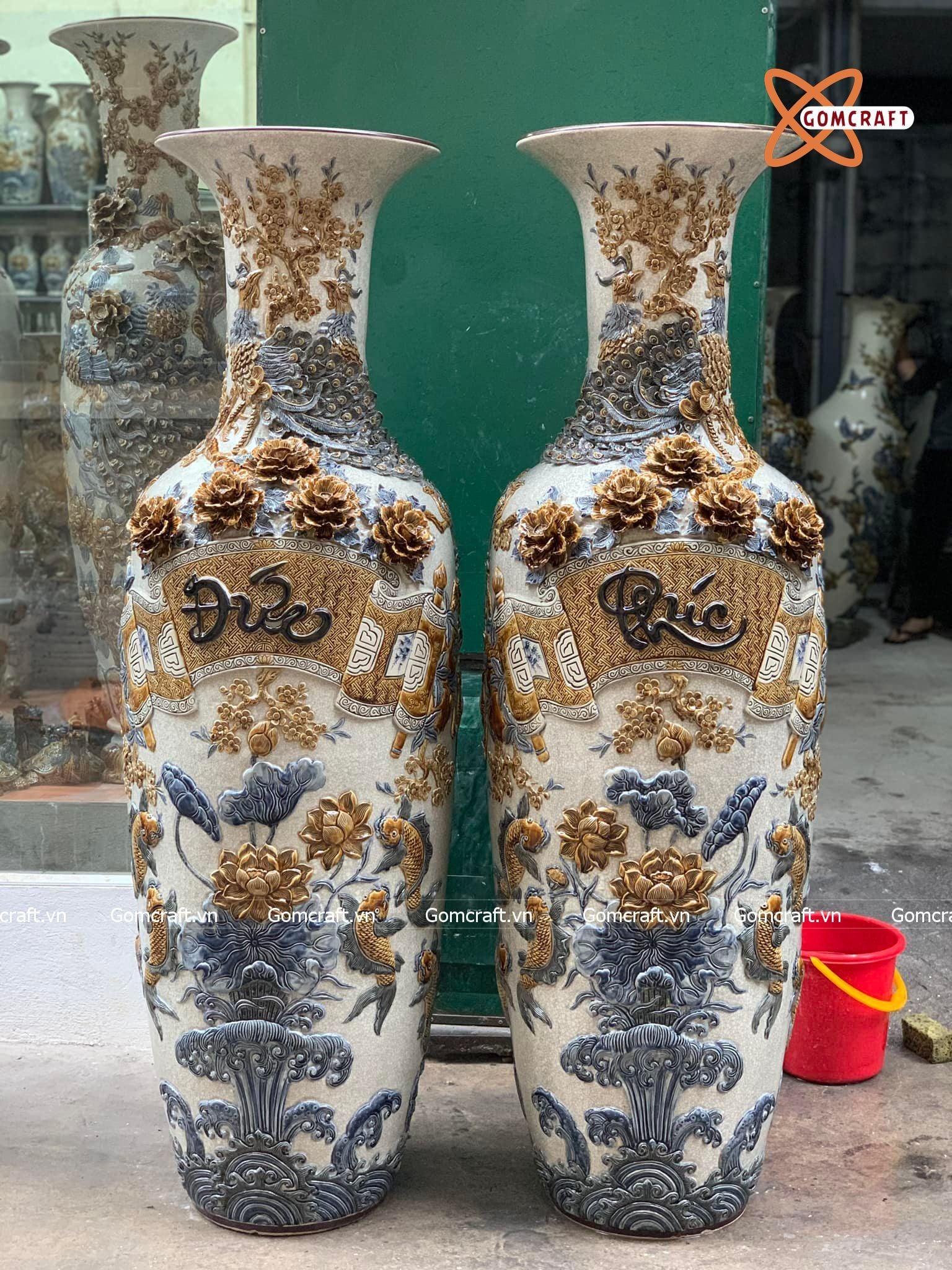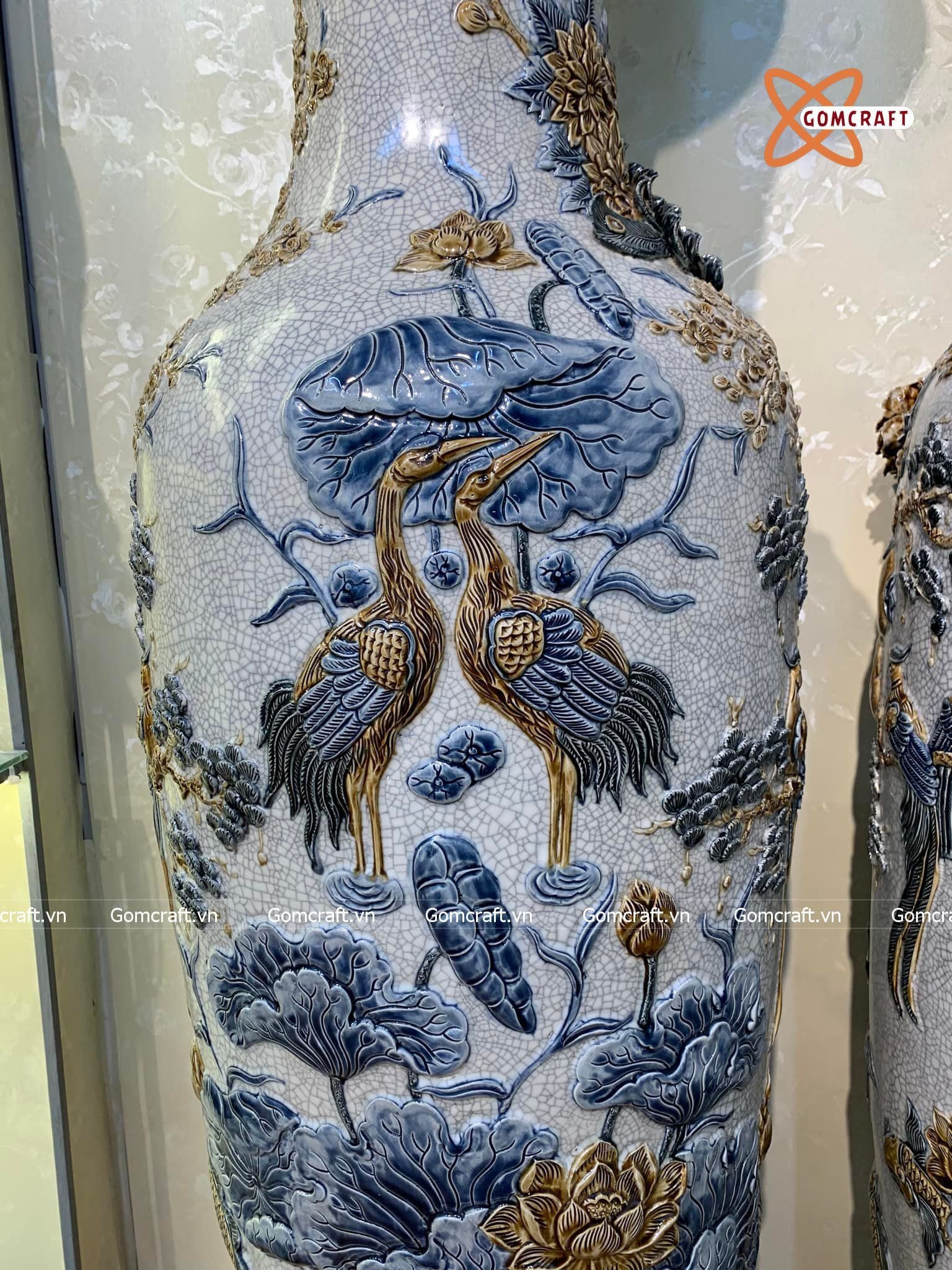 Lục bình Bát Tràng cao cấp Phúc Đức men rạn đắp nổi kênh bong siêu kĩ cao 1m4