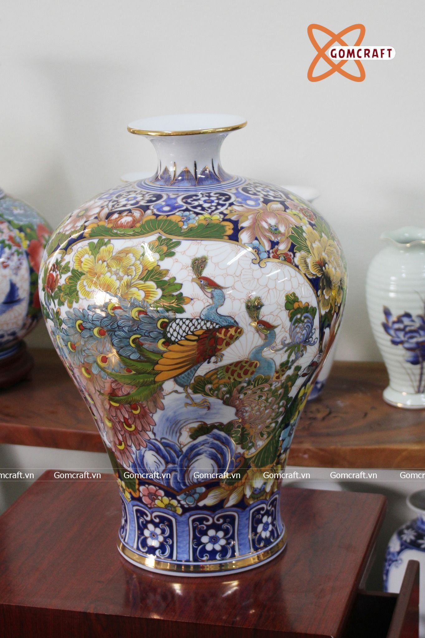 - Họa tiết tinh tế độc đáo: Mai bình tích lộc được trang trí với nhiều họa tiết hoa văn mang ý nghĩa tốt lành, như hoa mai, hoa đào, hoa sen, hoa mẫu đơn, chim công, rồng phụng, bát mã, bát bảo, v.v.. Một số bình tích lộc còn được dát vàng 24K hoặc vẽ vàng 24K để tăng thêm vẻ sang trọng và quý phái.