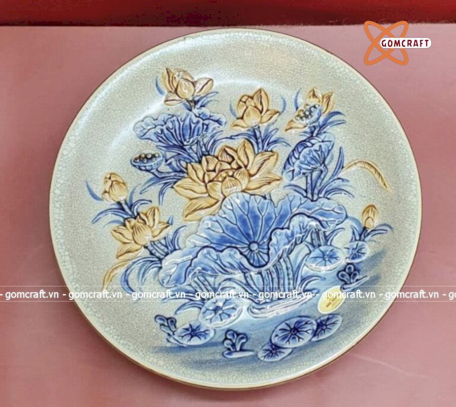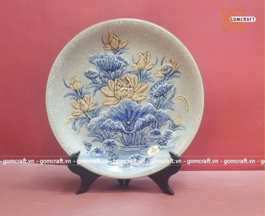 Mâm bồng bằng gốm được sử dụng làm phụ kiện bộ đồ thờ bằng gốm trên ban thờ thần tài, thổ địa.