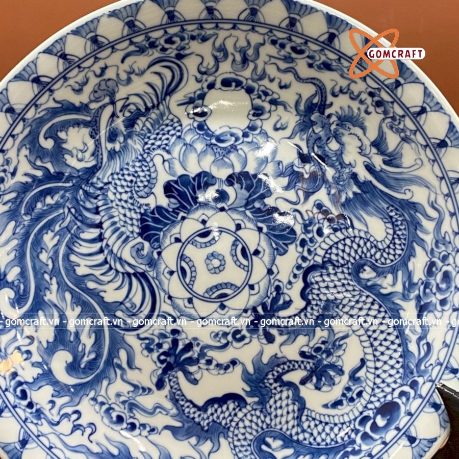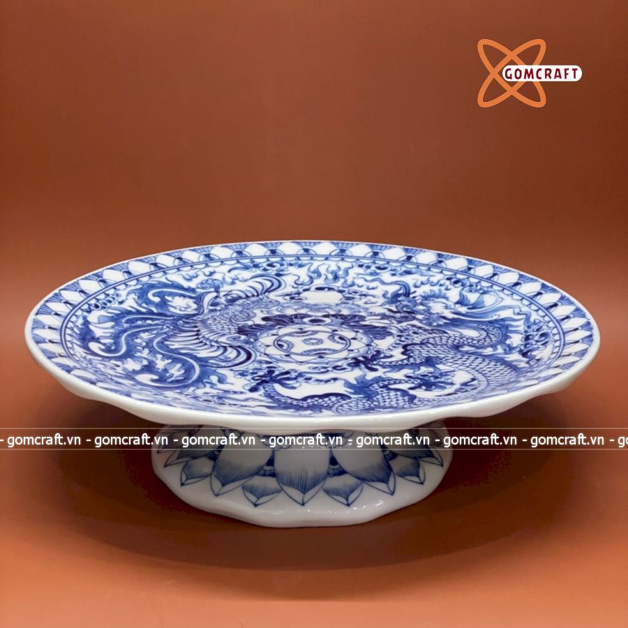 Mâm Bồng Vẽ Kỹ Men Lam