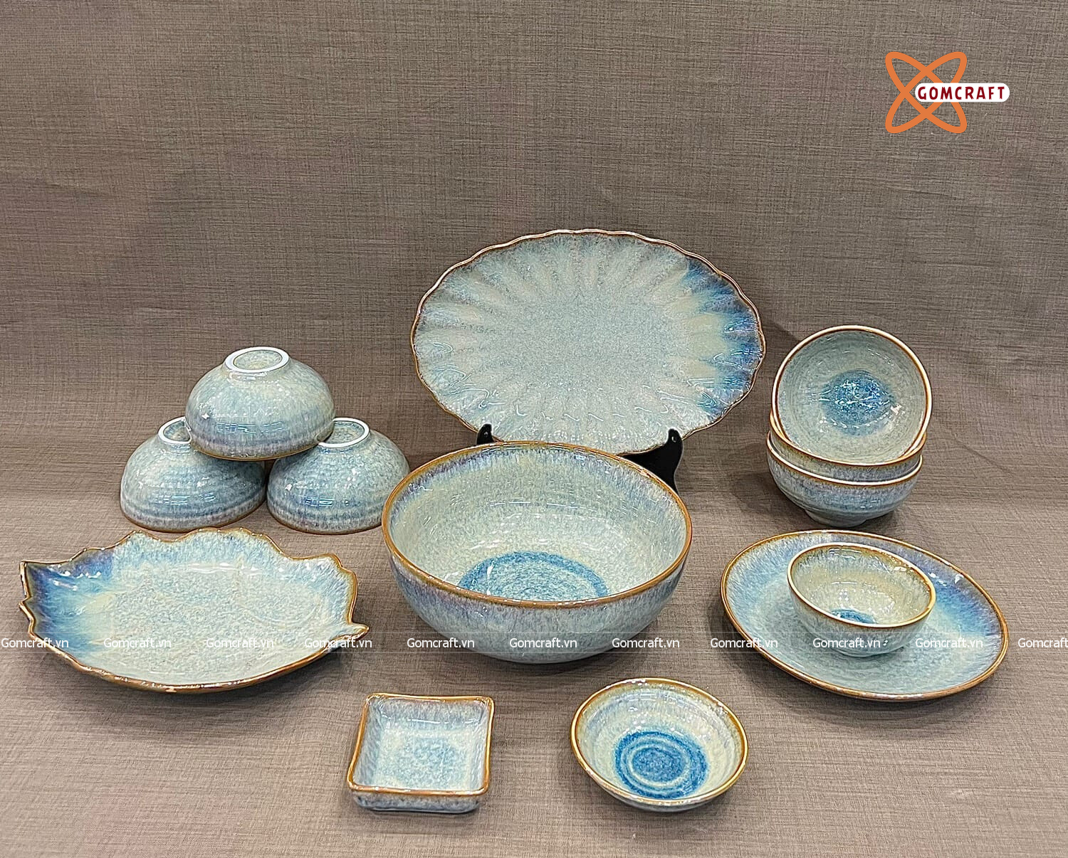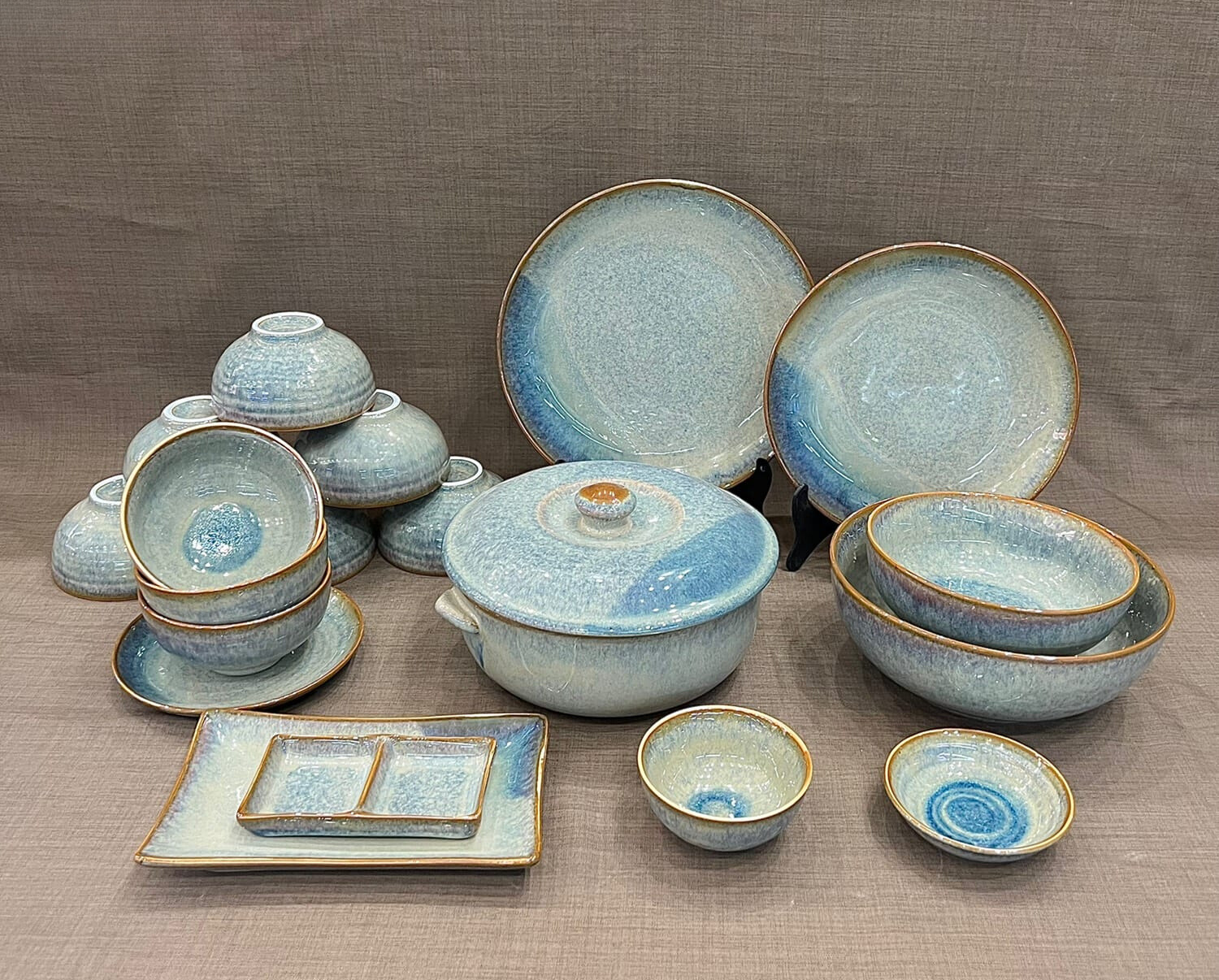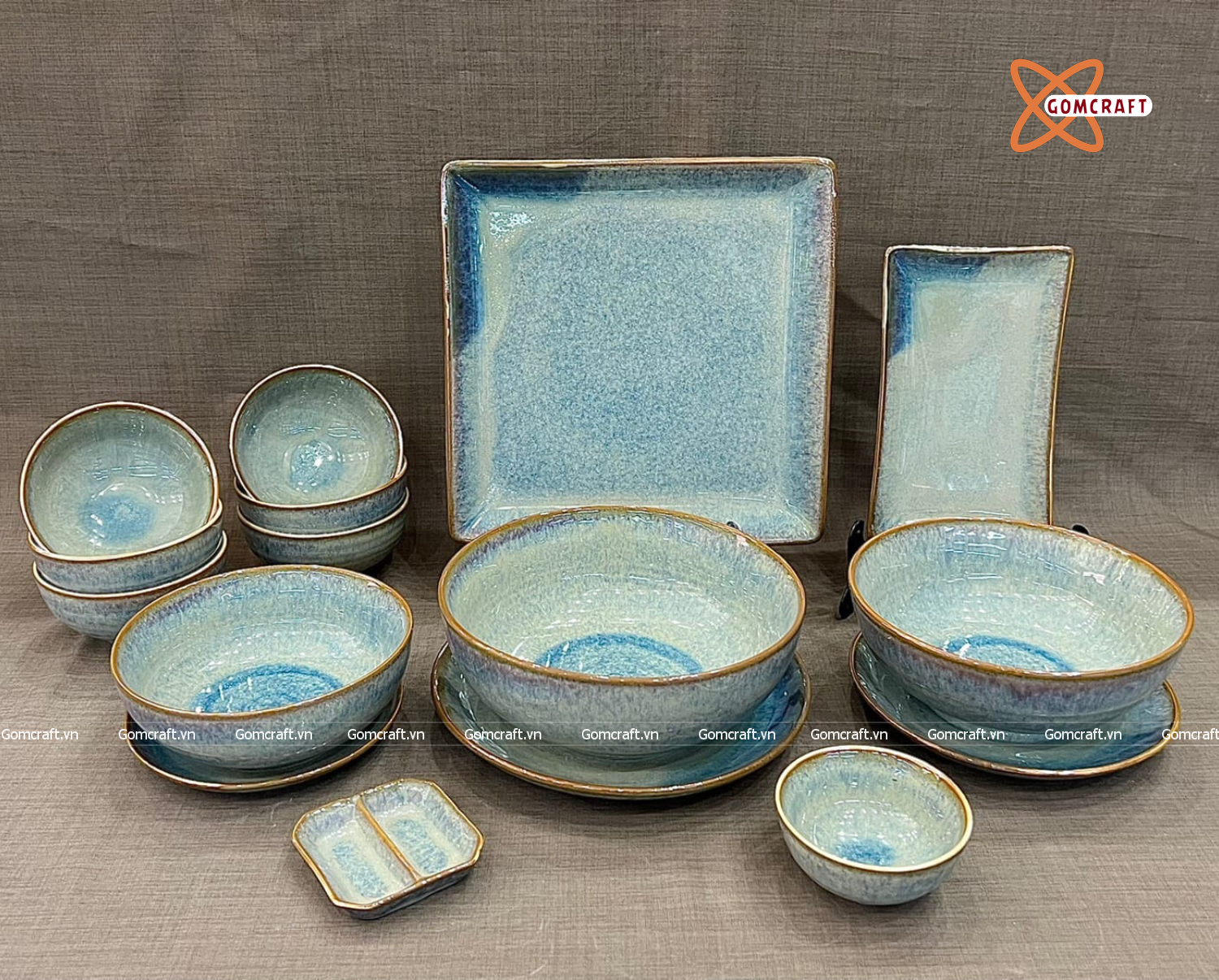 Quà Tặng Doanh Nghiệp bát sứ | Bát Sứ Bát Tràng Bộ Đồ Ăn men xanh ngọc 20 vật phẩm