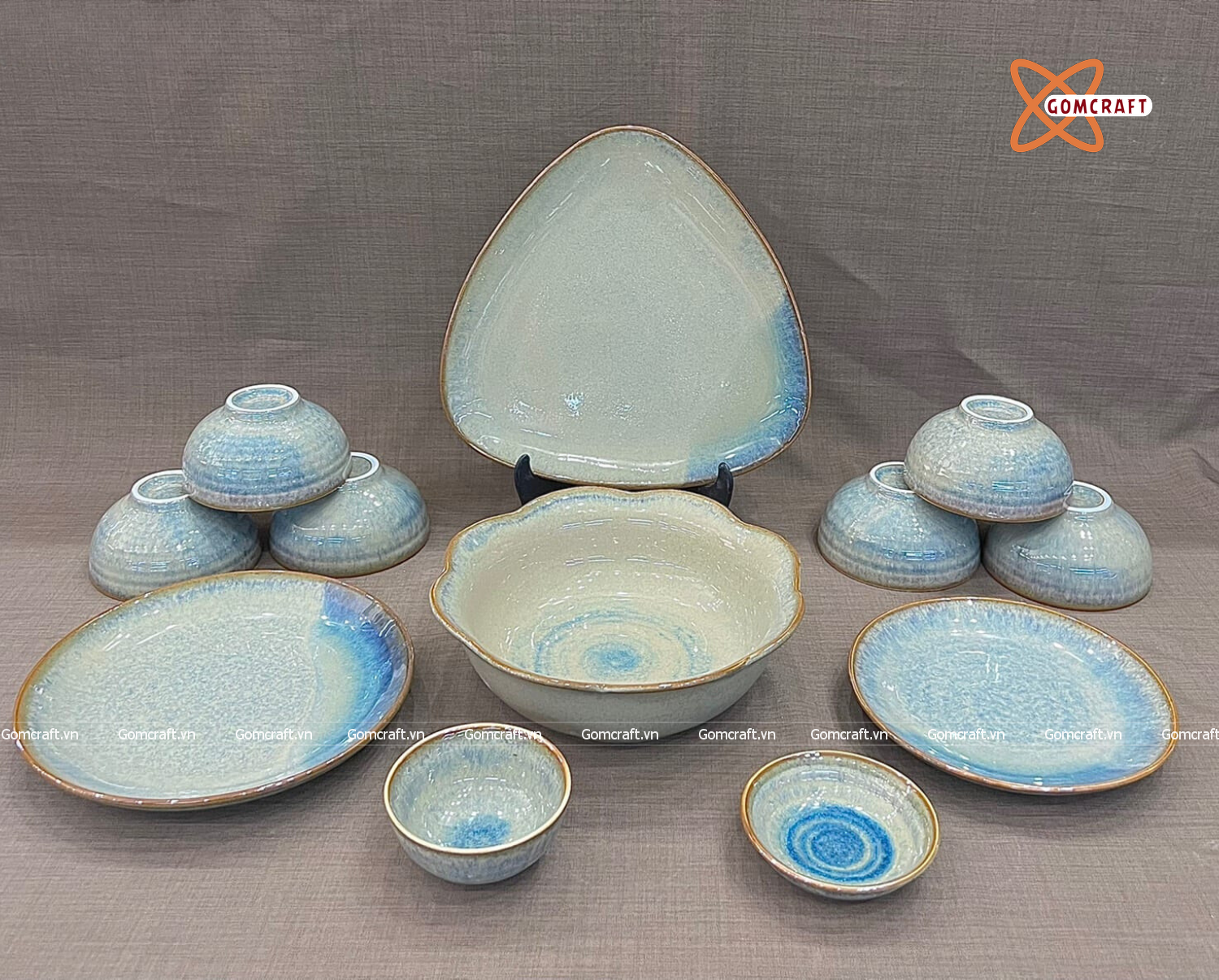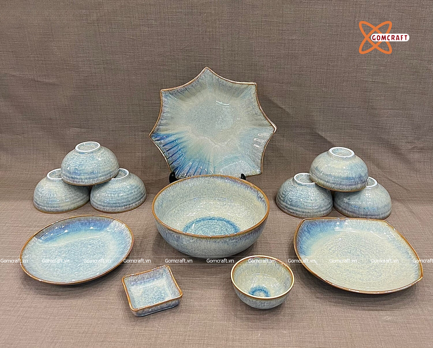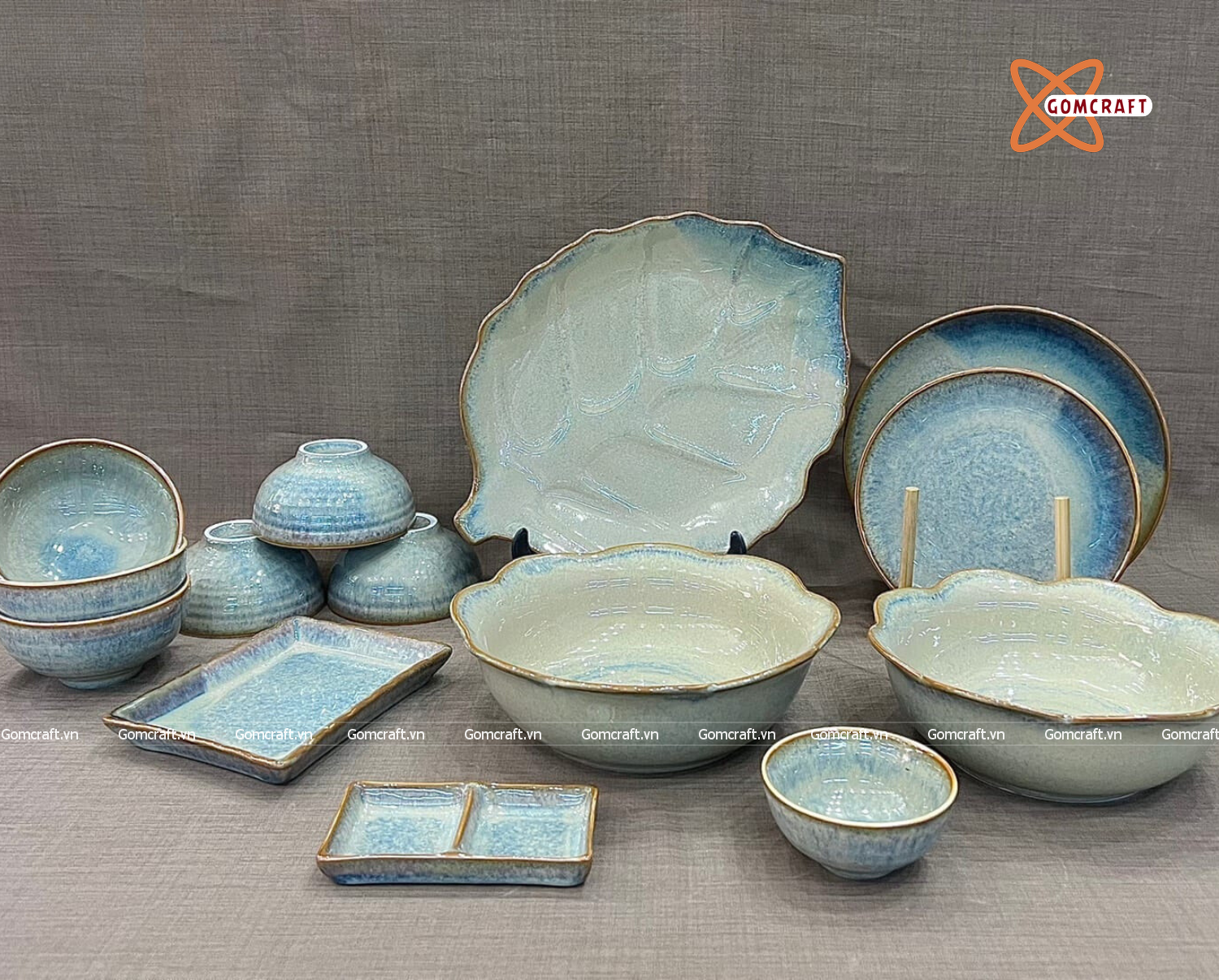 Quà Tặng Doanh Nghiệp bát sứ | Bát Sứ Bát Tràng Bộ Đồ Ăn men xanh ngọc 20 vật phẩm