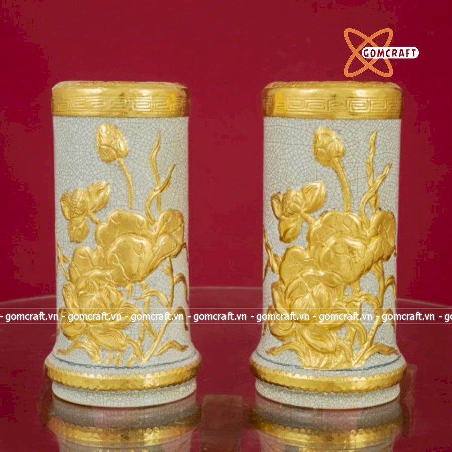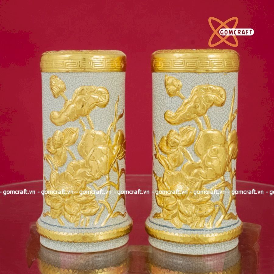 Ống Hương Sen Men Rạn Dát Vàng Bát Tràng
