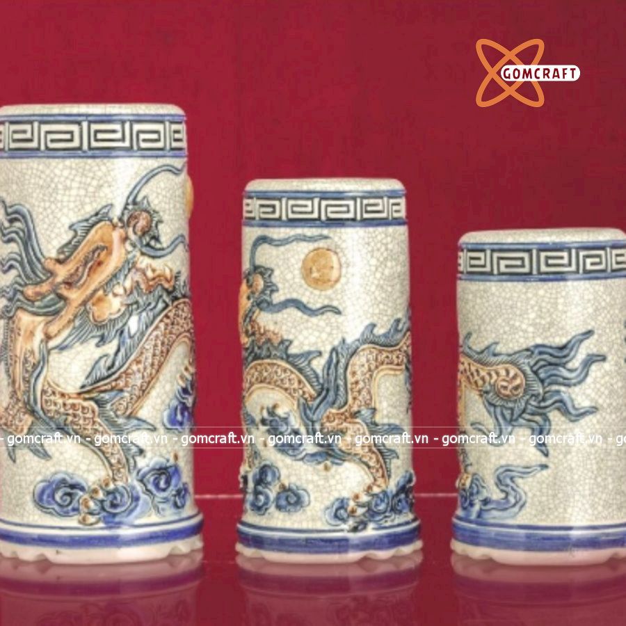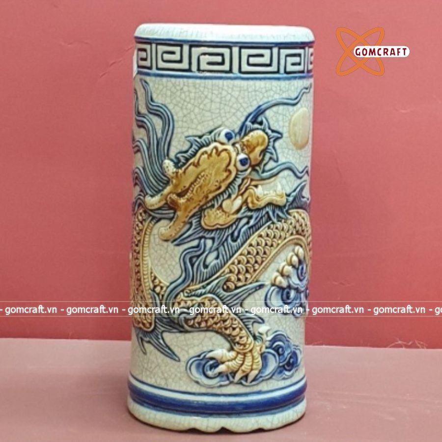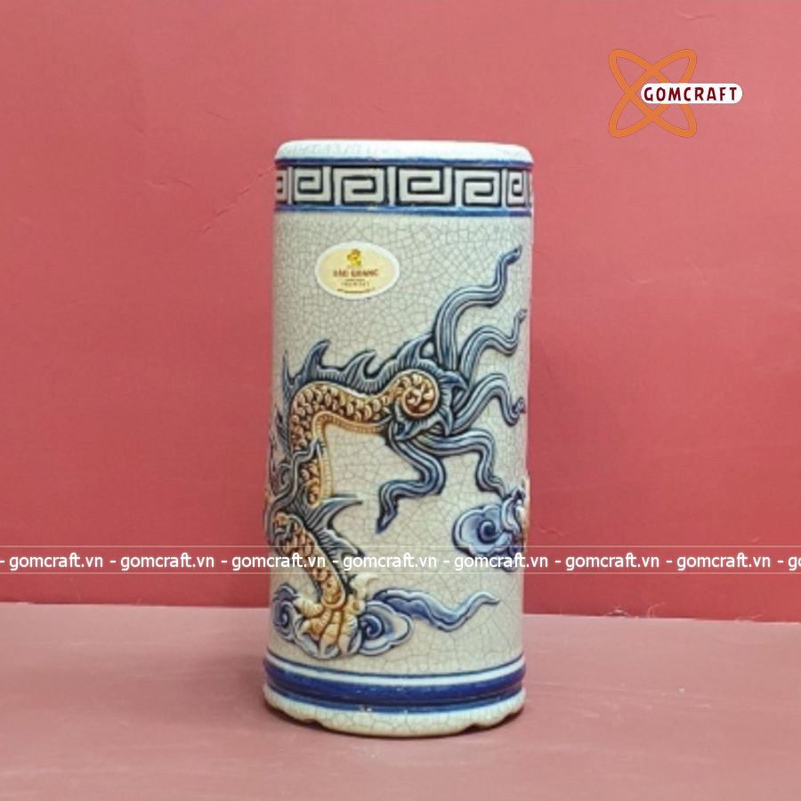 Ống Hương Thờ Sứ Men Rạn Đắp Nổi Cao Cấp 16cm