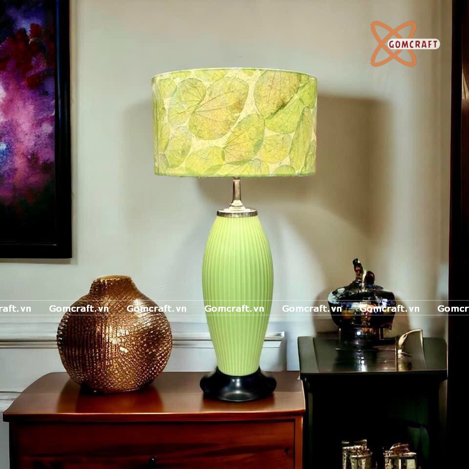 Quà Sinh Nhật | Đèn trang trí phòng ngủ Gốm sứ Bát Tràng vuốt tay dáng chân thon màu xanh mạ cao 56cm