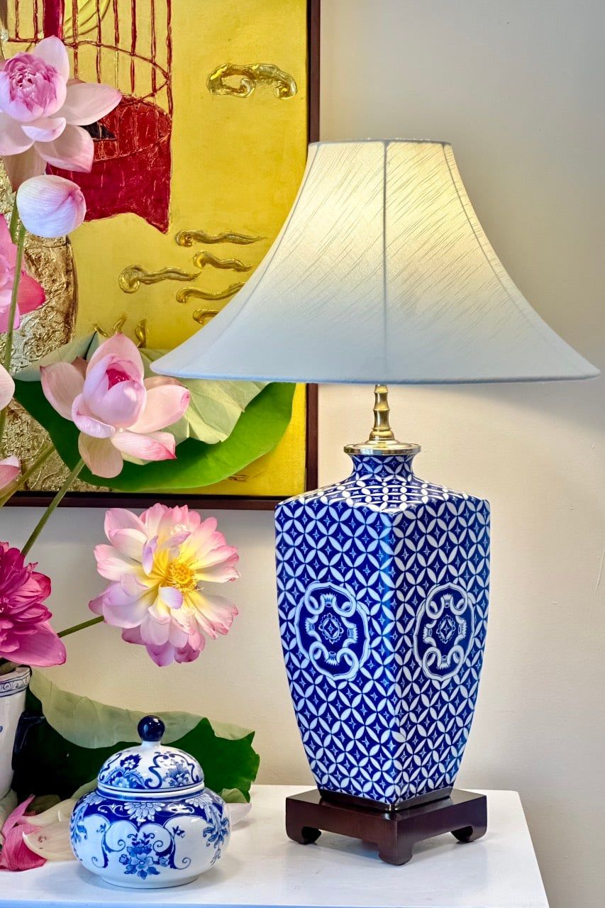 Quà Sinh Nhật | Đèn trang trí phòng ngủ Gốm sứ Bát Tràng vuốt tay men lam vẽ kín cao 58cm