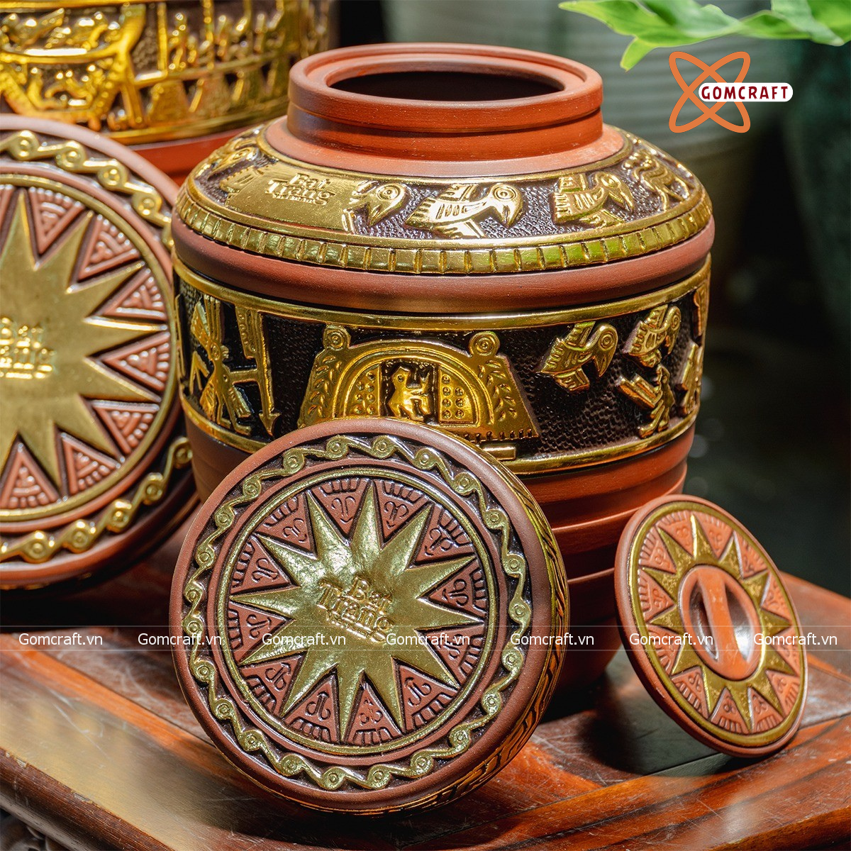 Quà tặng Bố Chum sành đắp nổi dát vàng Trống Đồng Âu Lạc dung tích 50l