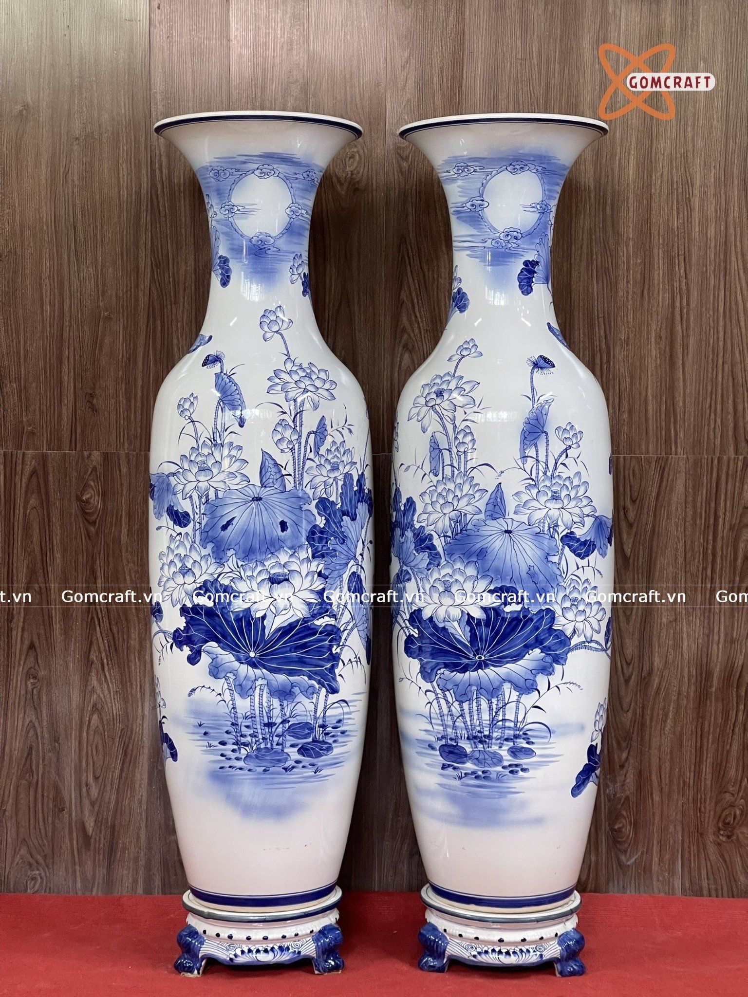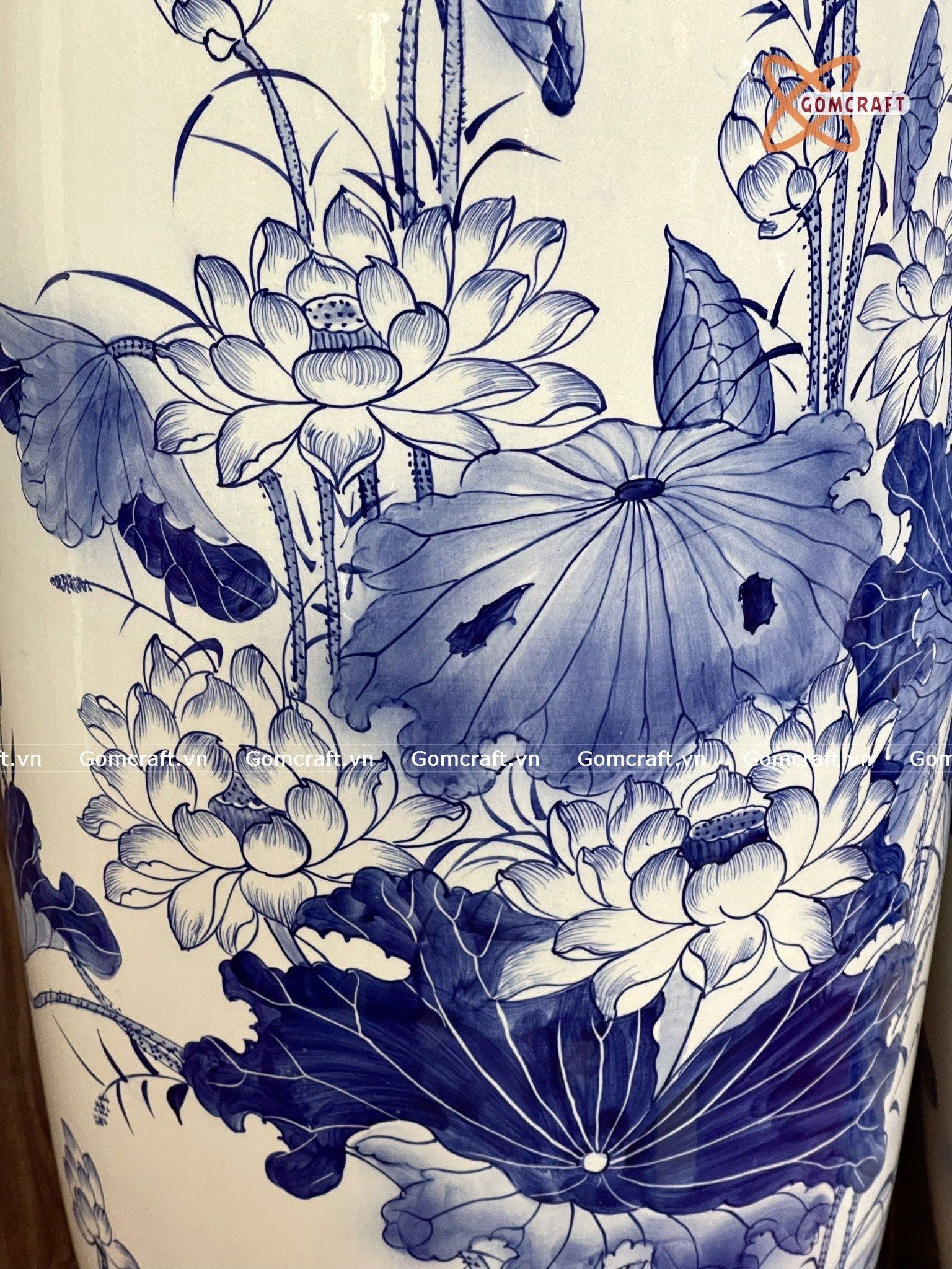 Quà Tặng Bố lục bình Bát Tràng | Lục Bình Bát Tràng men trắng vẽ Sen Nước cao 1m4 bụng 40cm