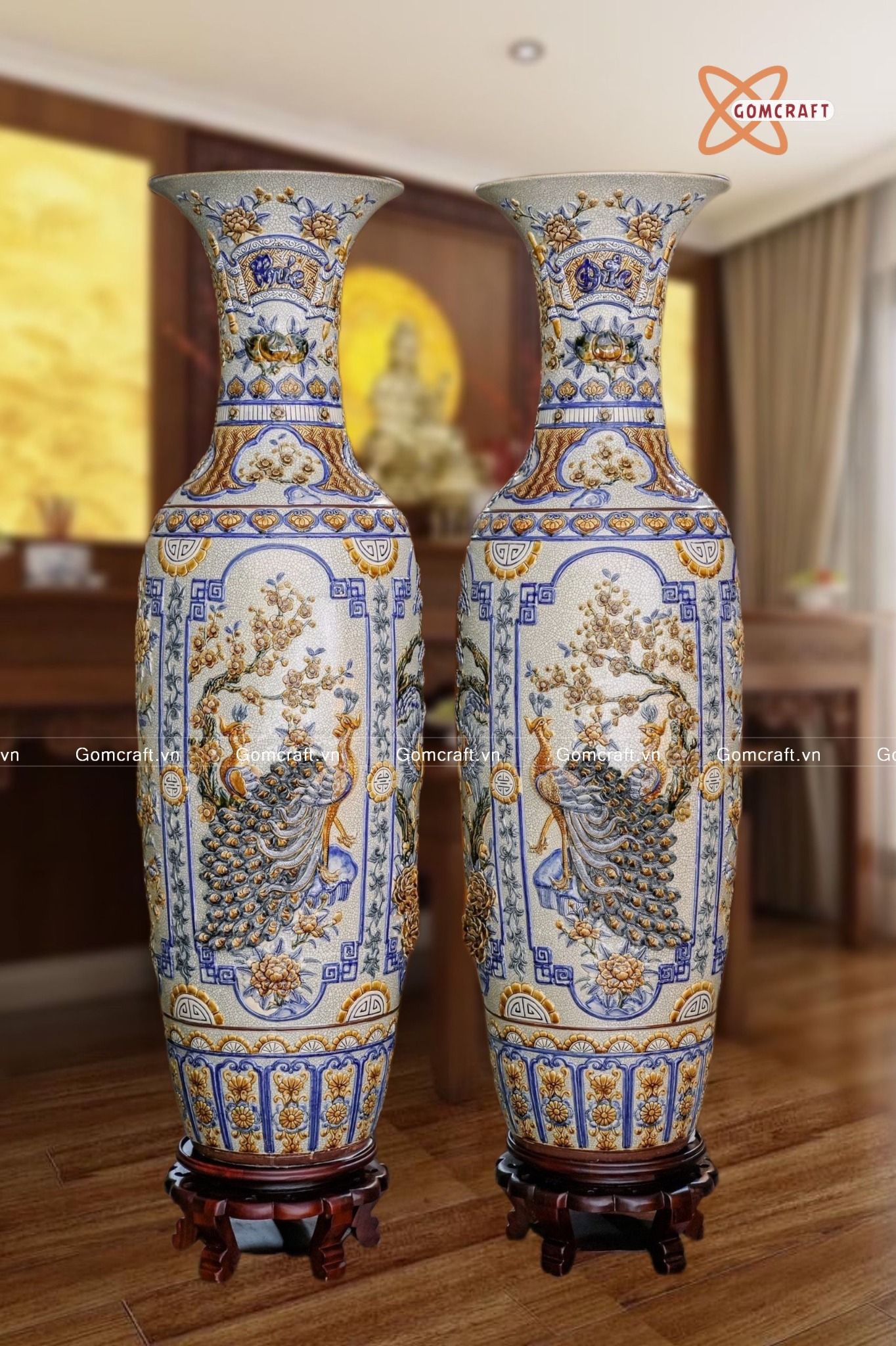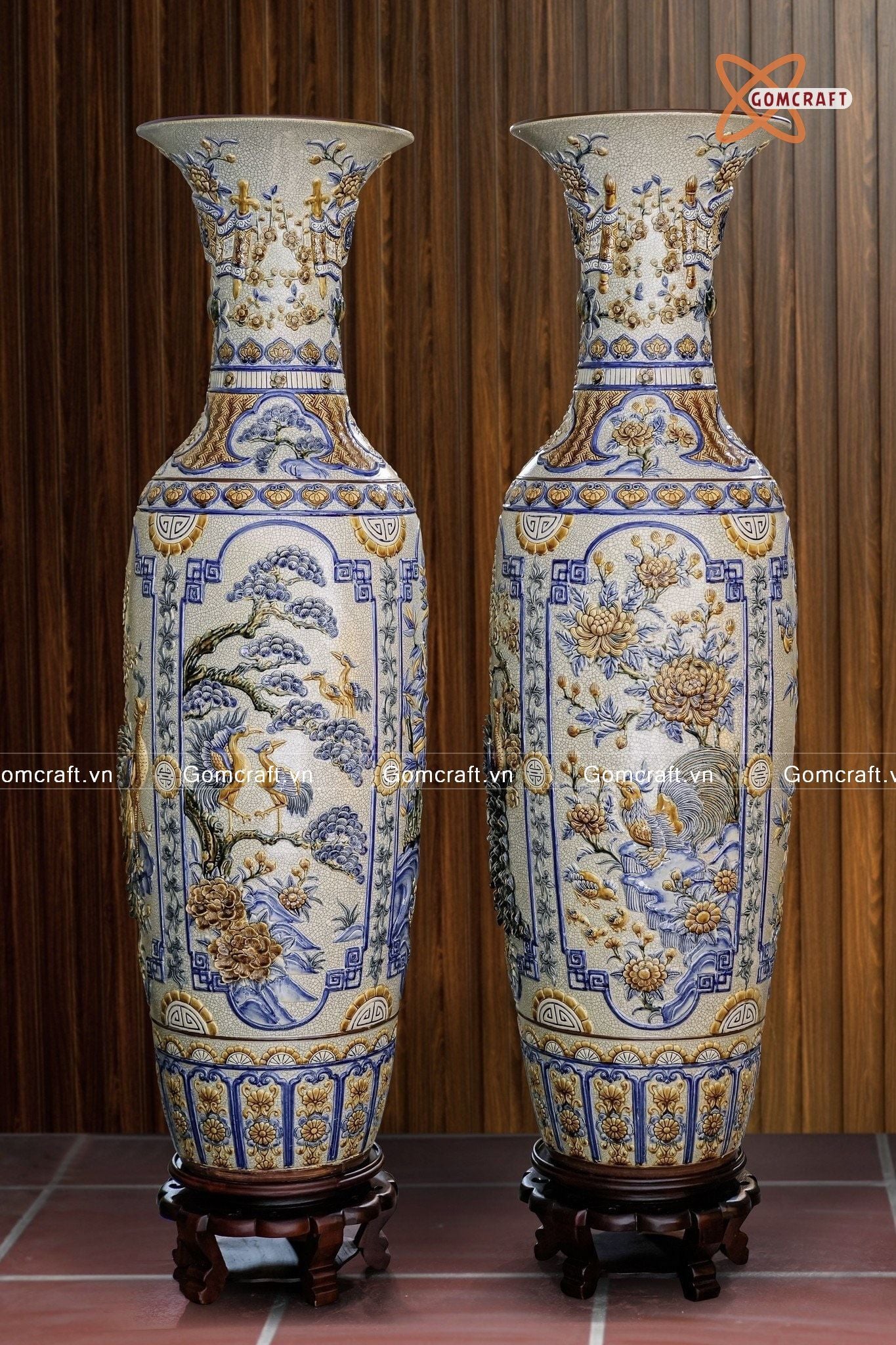 Quà Tặng Bố | Lục Bình Bát Tràng hàng cao cấp men rạn đắp nổi kênh bong Tứ Cảnh cao 1m65
