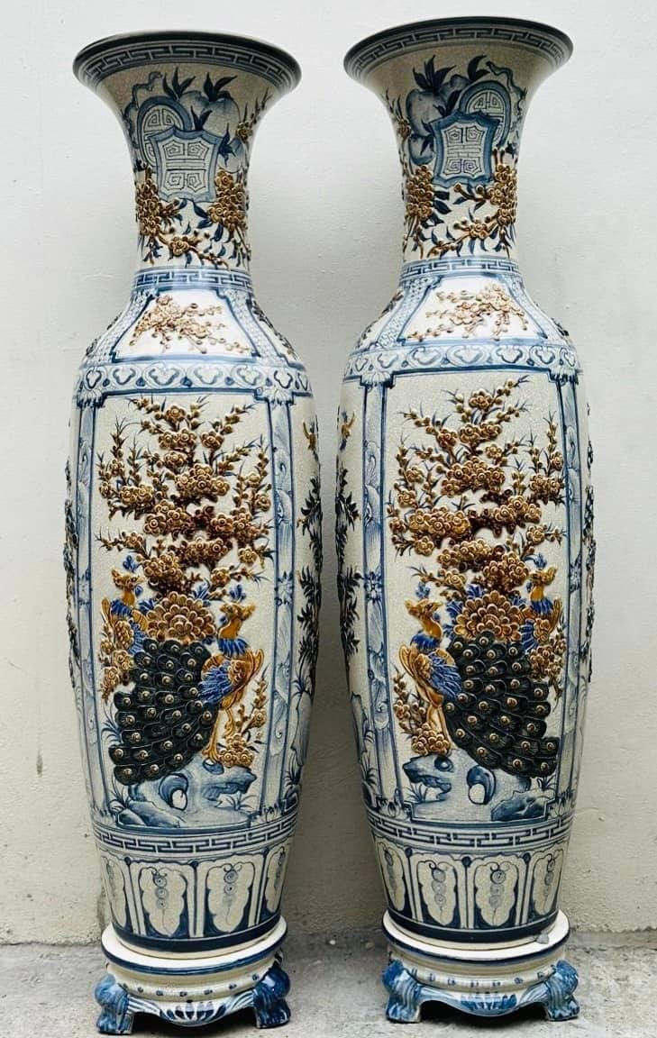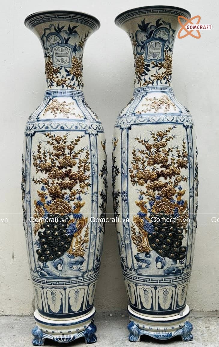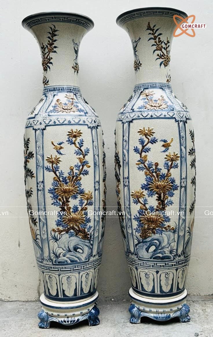 Quà Tặng Bố | Lục Bình Bát Tràng men rạn đắp nổi Tứ Quý cao 1m4
