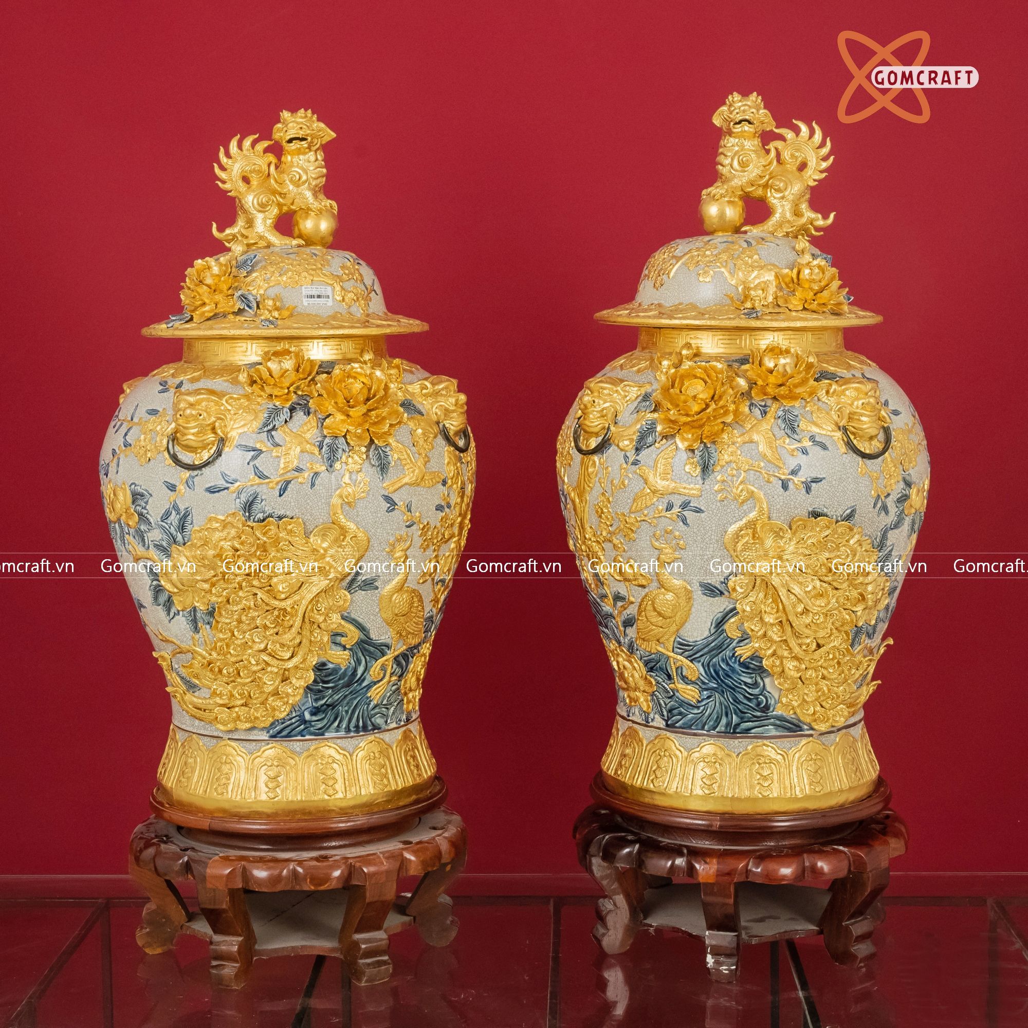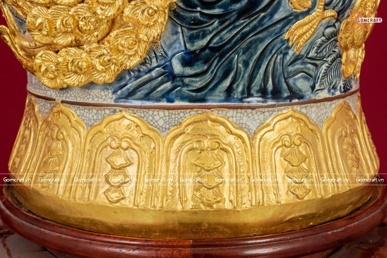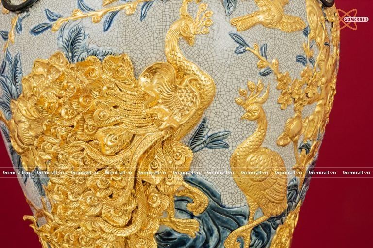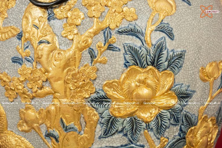 Quà Tặng Cao Cấp | Chóe Bát Tràng 60 lít dát vàng Công Danh Phú Quý đắp nổi kênh bong men rạn
