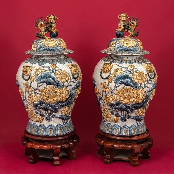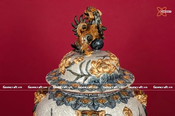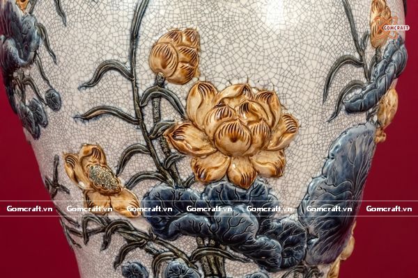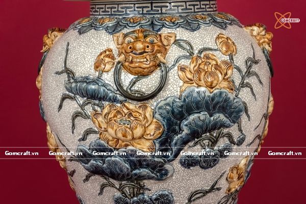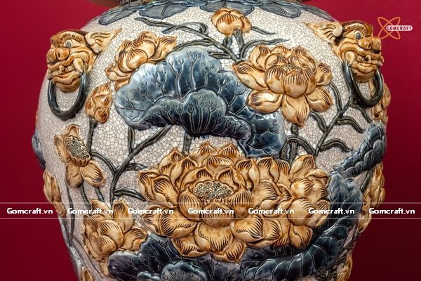 Quà Tặng Cao Cấp | Chóe Bát Tràng 60 lít đắp nổi Liên Hoa men rạn