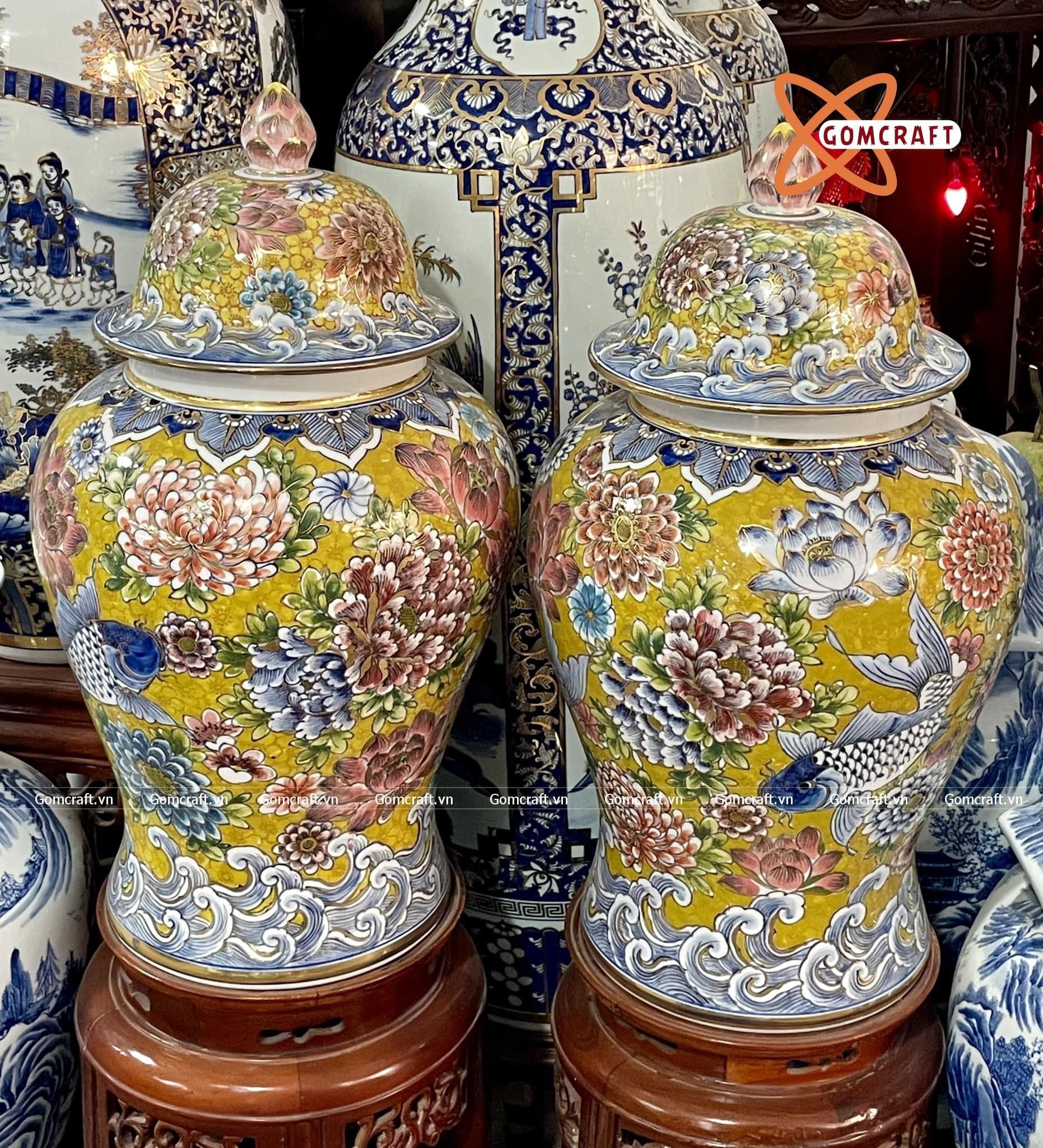 Quà Tặng Cao Cấp | Chóe Bát Tràng Ngàn Hoa vẽ vàng cao 62 cm