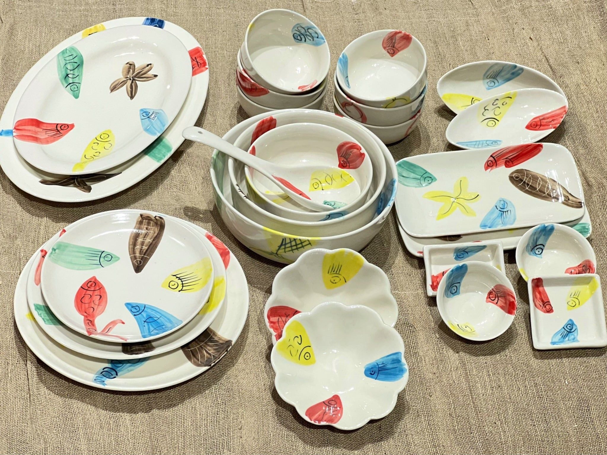 Quà Tặng Doanh Nghiệp bát sứ | Bát Sứ Bát Tràng bộ bát ăn decor gia đình họa tiết Cá Đại Dương 25 chi tiết