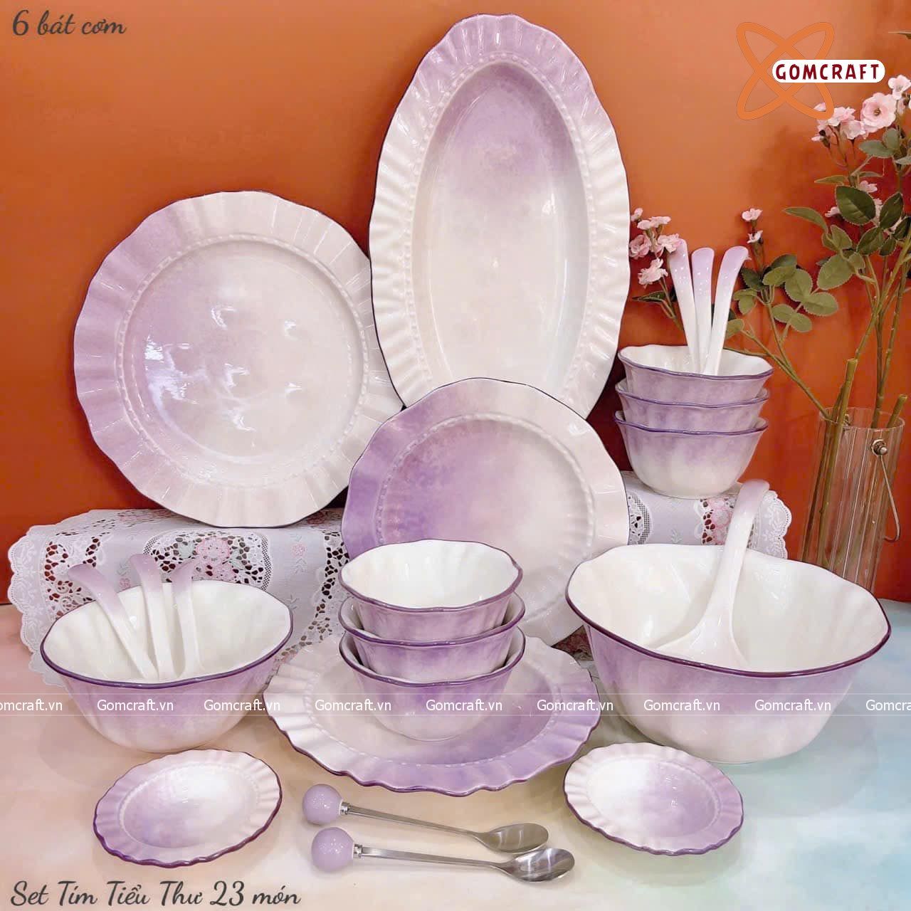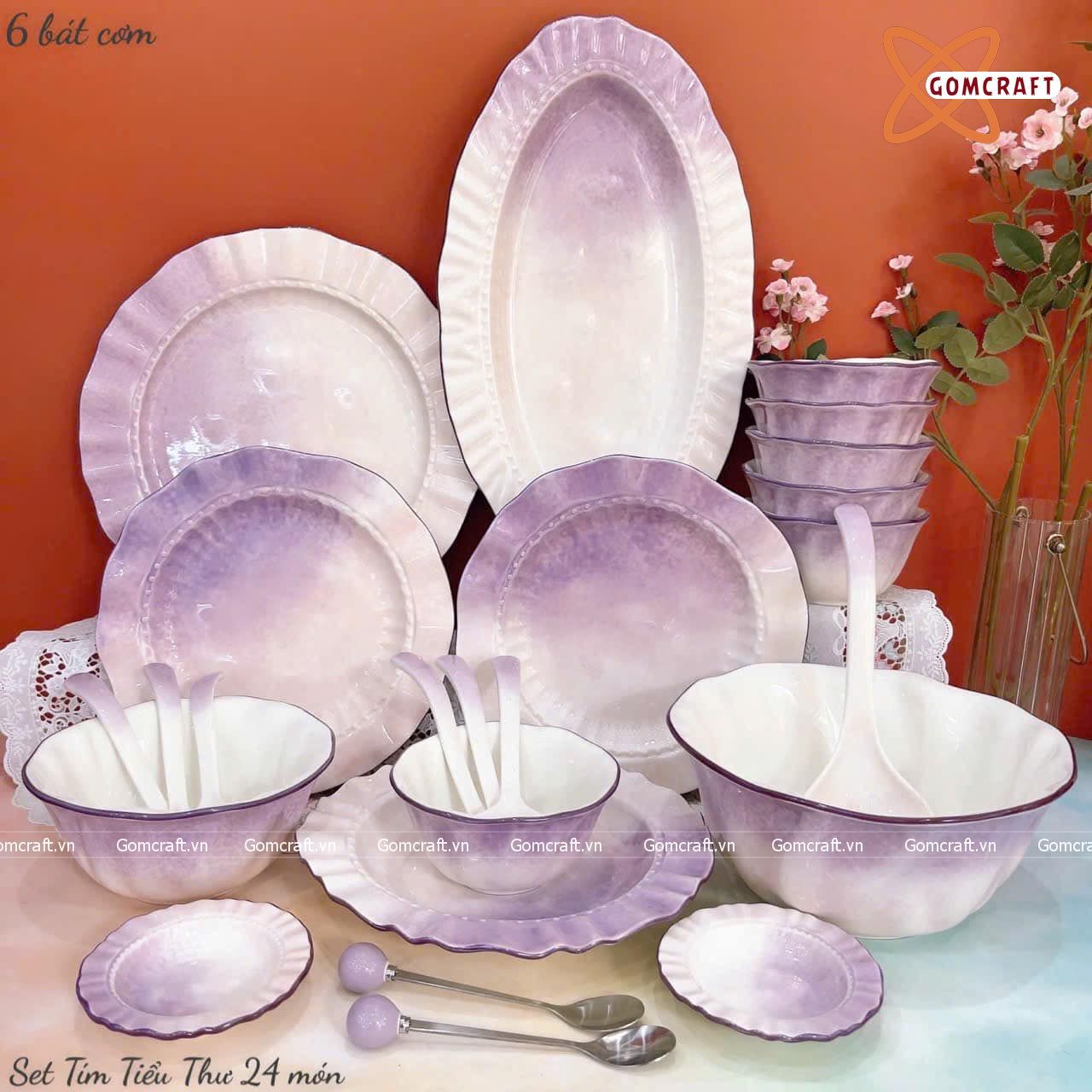 Quà Tặng Doanh Nghiệp bát sứ | Bát Sứ Bát Tràng Bộ Đồ Ăn men hoả biến tím tiểu thư 23 vật phẩm