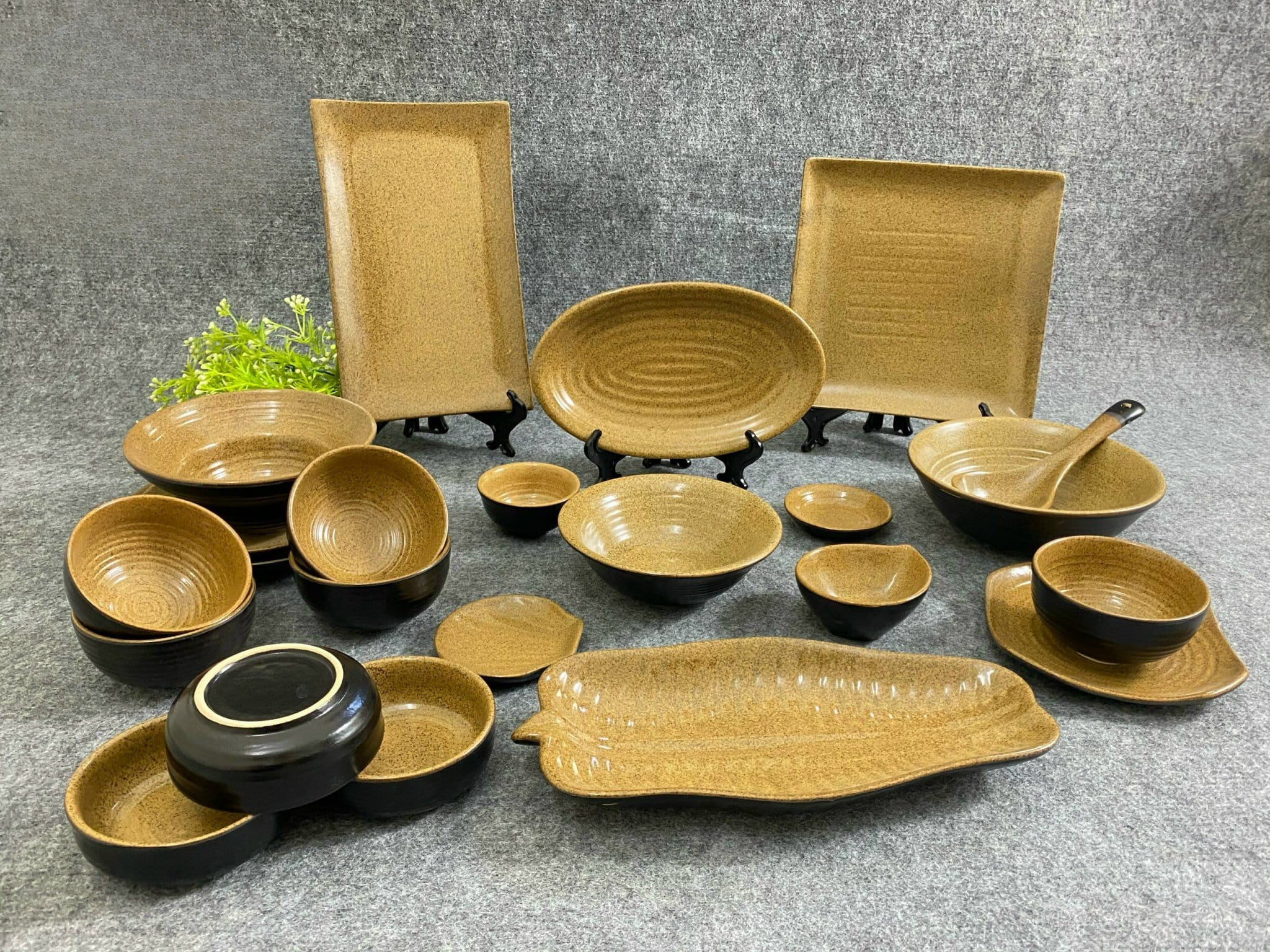 Quà Tặng Doanh Nghiệp bát sứ | Bát Sứ Bát Tràng Bộ Đồ Ăn men nâu đen 19 vật phẩm
