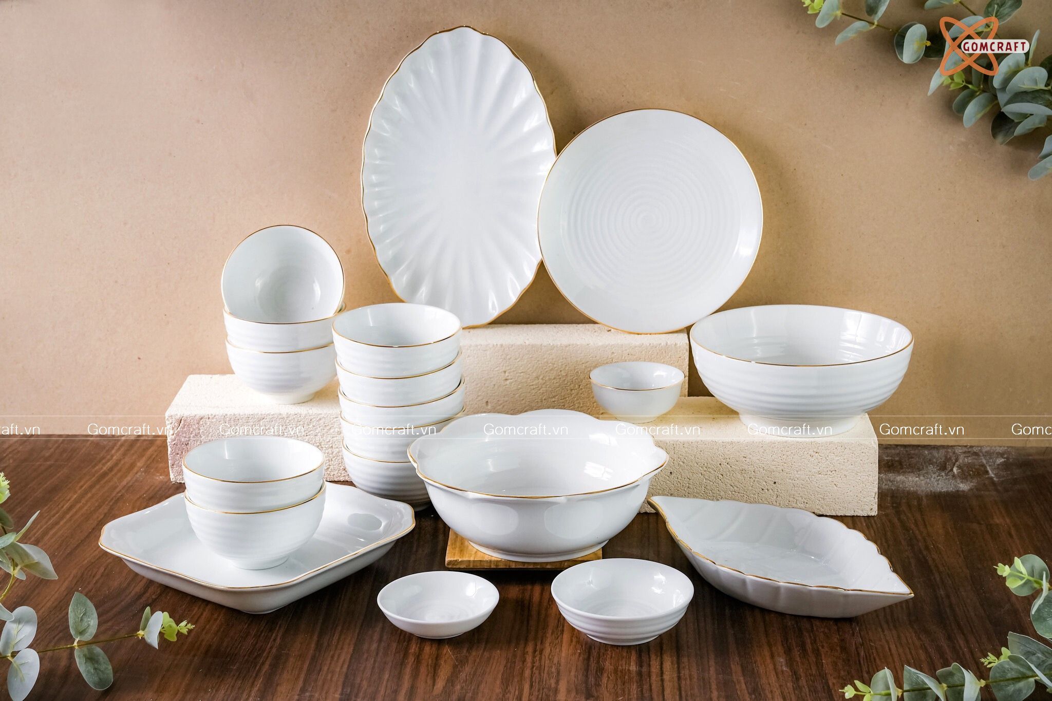 Quà Tặng Doanh Nghiệp bát sứ | Bát Sứ Bát Tràng bộ Đồ ăn vẽ vàng 19 chi tiết