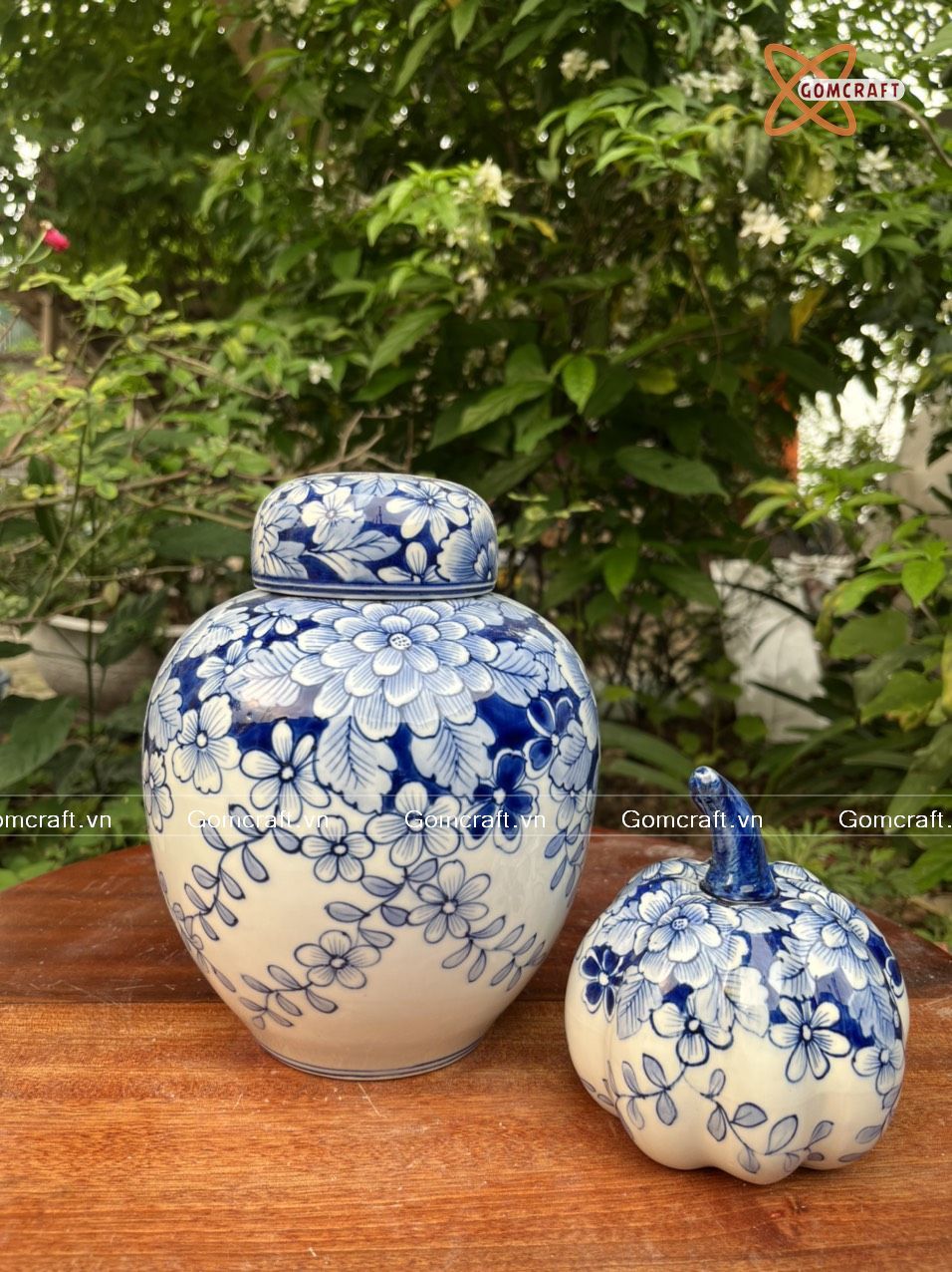 Quà tặng Doanh Nghiệp Hũ Đựng Trà gốm sứ Bát Tràng cao cấp hoa dây cao 22cm