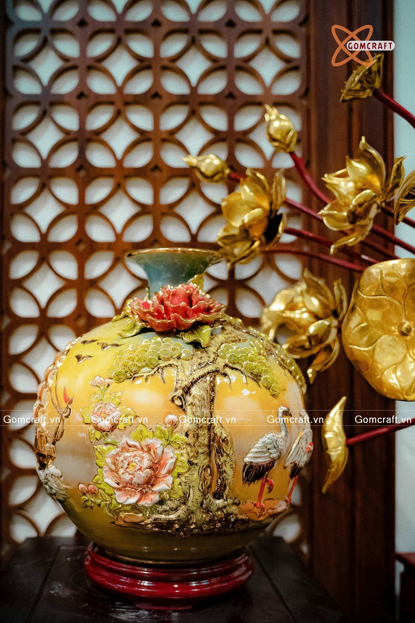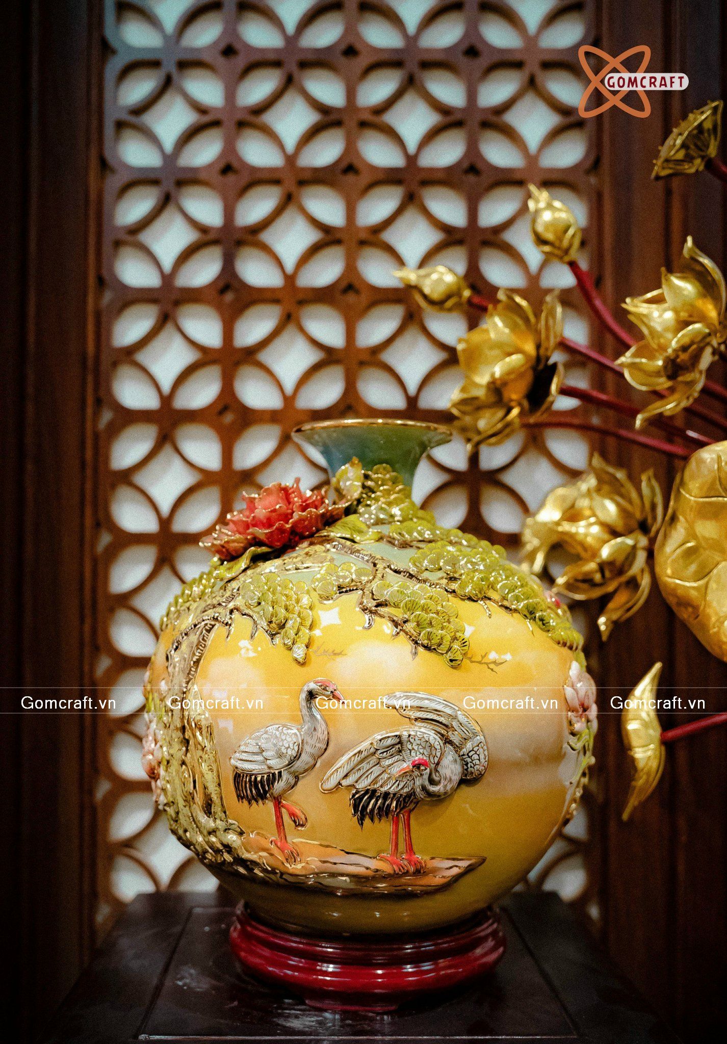 - Họa tiết tinh tế độc đáo: Bình Hút Lộc được trang trí với nhiều họa tiết hoa văn mang ý nghĩa tốt lành, như Hoa Mai, Hoa Đào, Hoa Sen, Hoa Mẫu Đơn, Chim Công, Rồng Phụng, Bát Mã, Bát Bảo v.v.. Một số bình hút lộc còn được dát vàng 24K hoặc vẽ vàng 24K để tăng thêm vẻ sang trọng và quý phái.