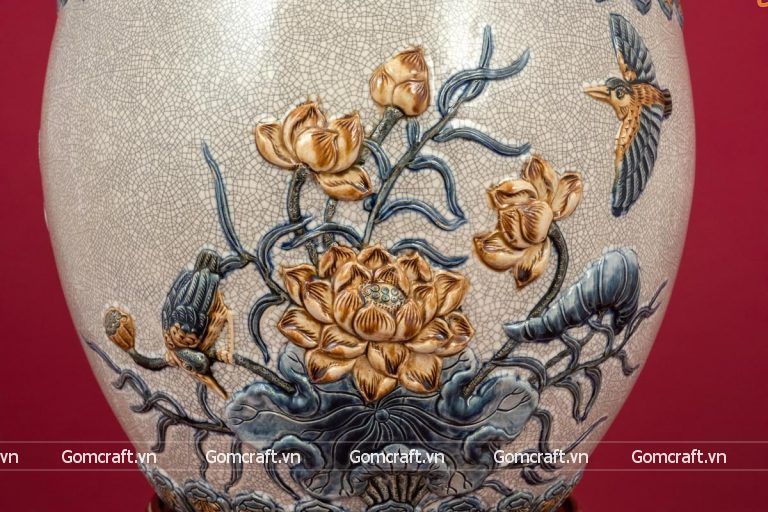Thống sứ Bát Tràng Công Danh Phú Quý men rạn đắp nổi cao 50 cm