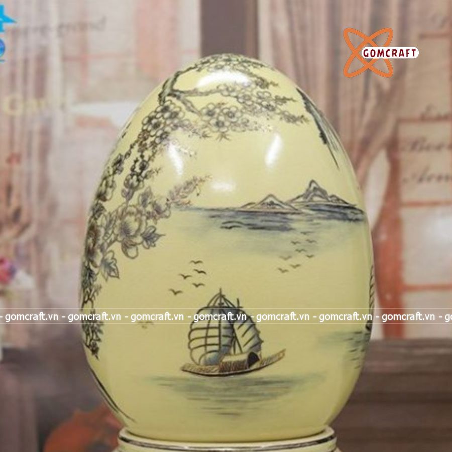 Trứng phú quý sinh tài nở lộc gốm Chu Đậu 30cm