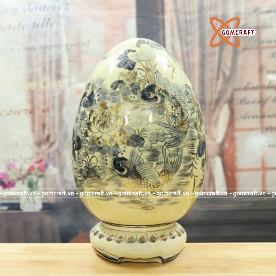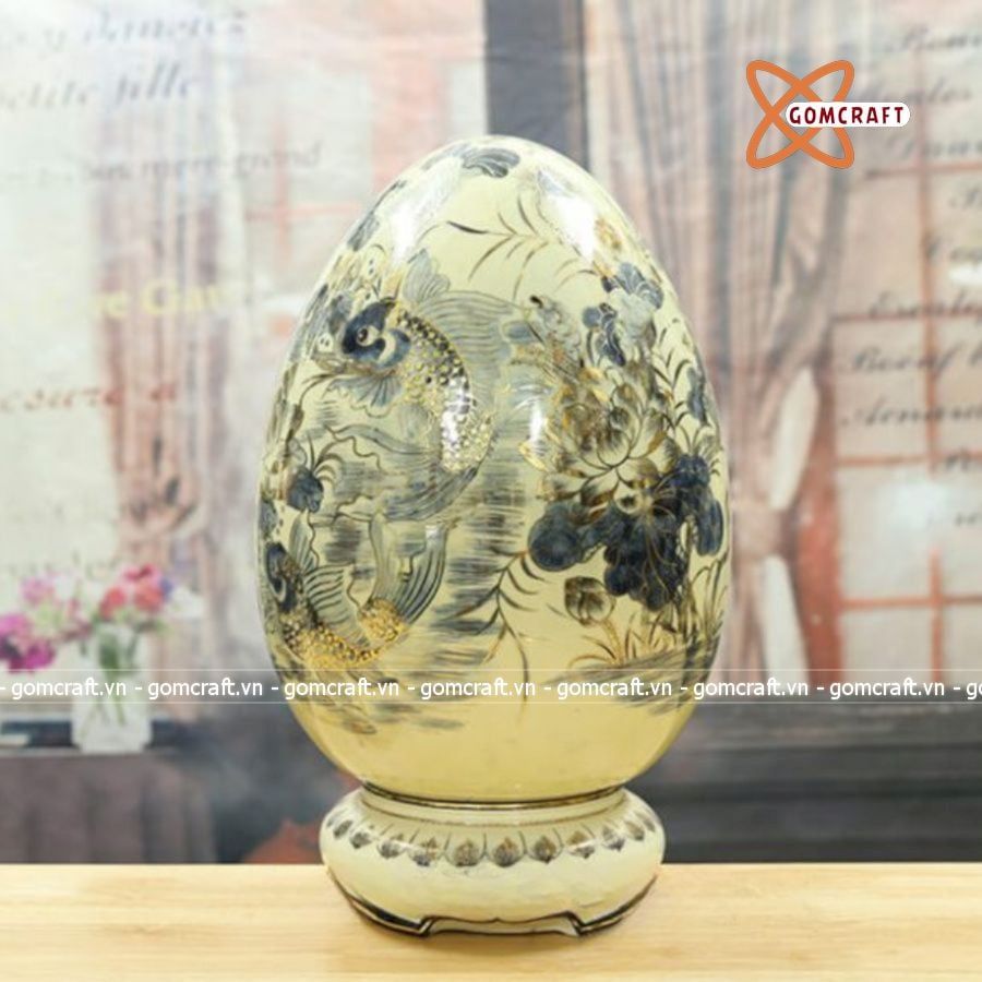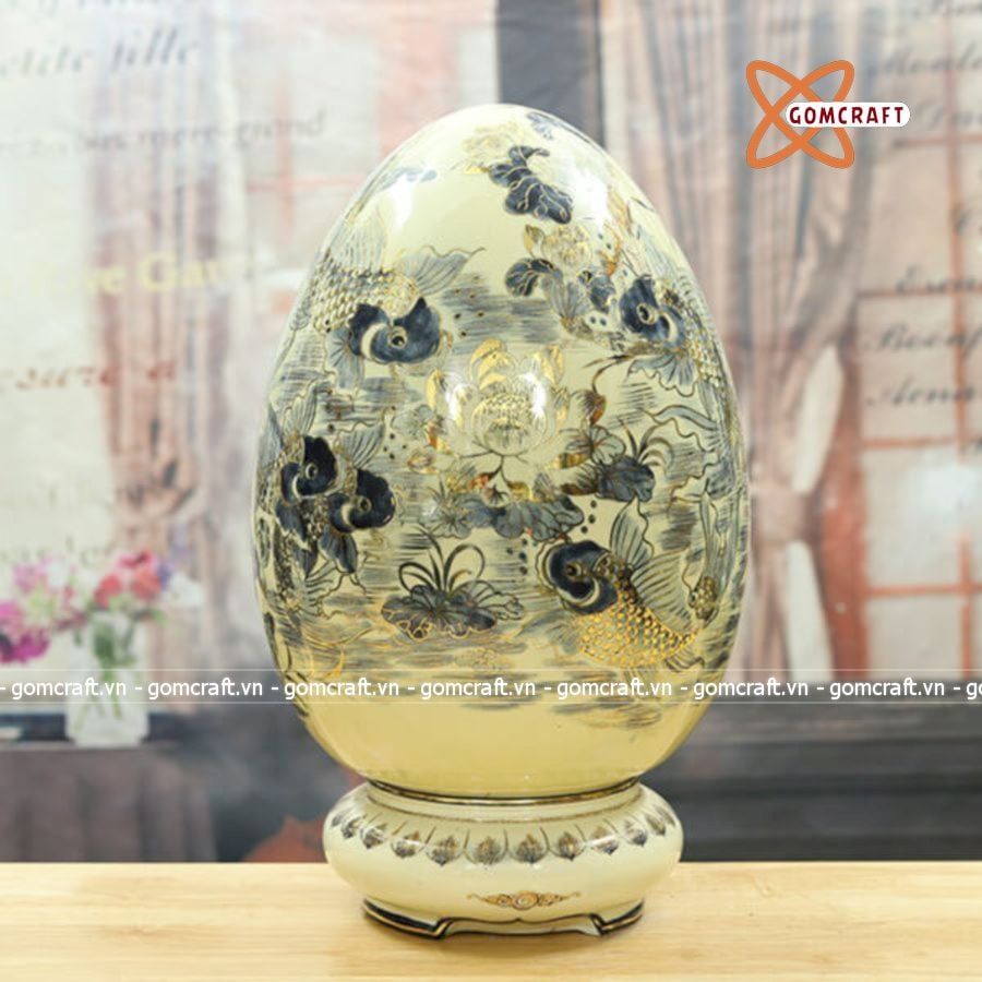 Trứng tài lộc gốm Chu Đậu vẽ vàng 40cm
